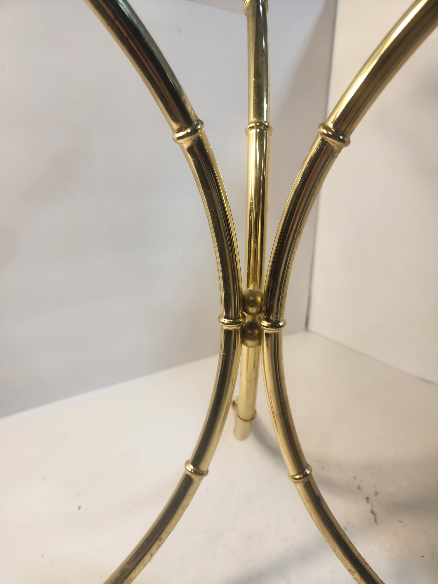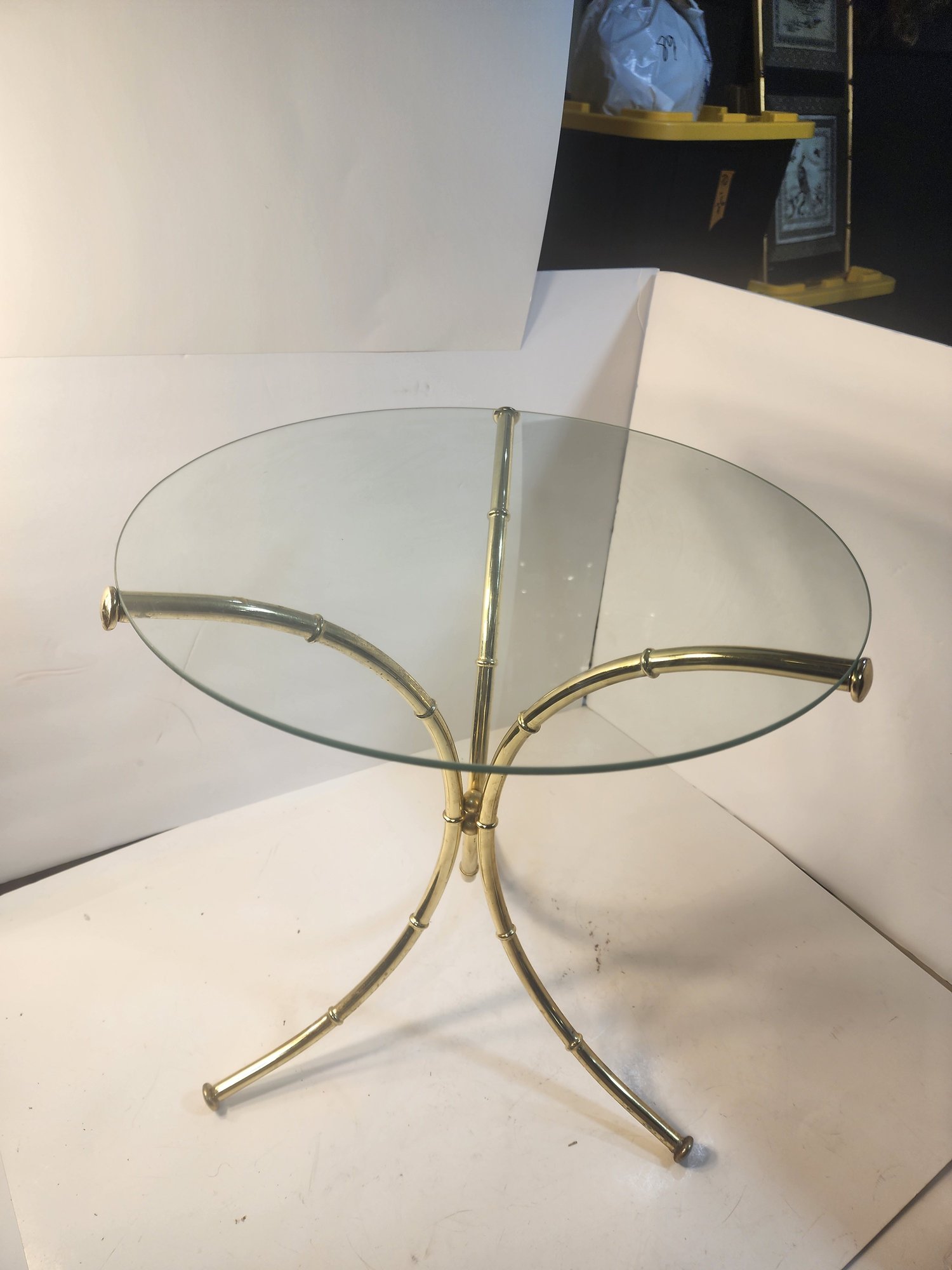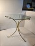 #242 Mid Century Small Brass Table With Removable Glass Top 15round By 17high