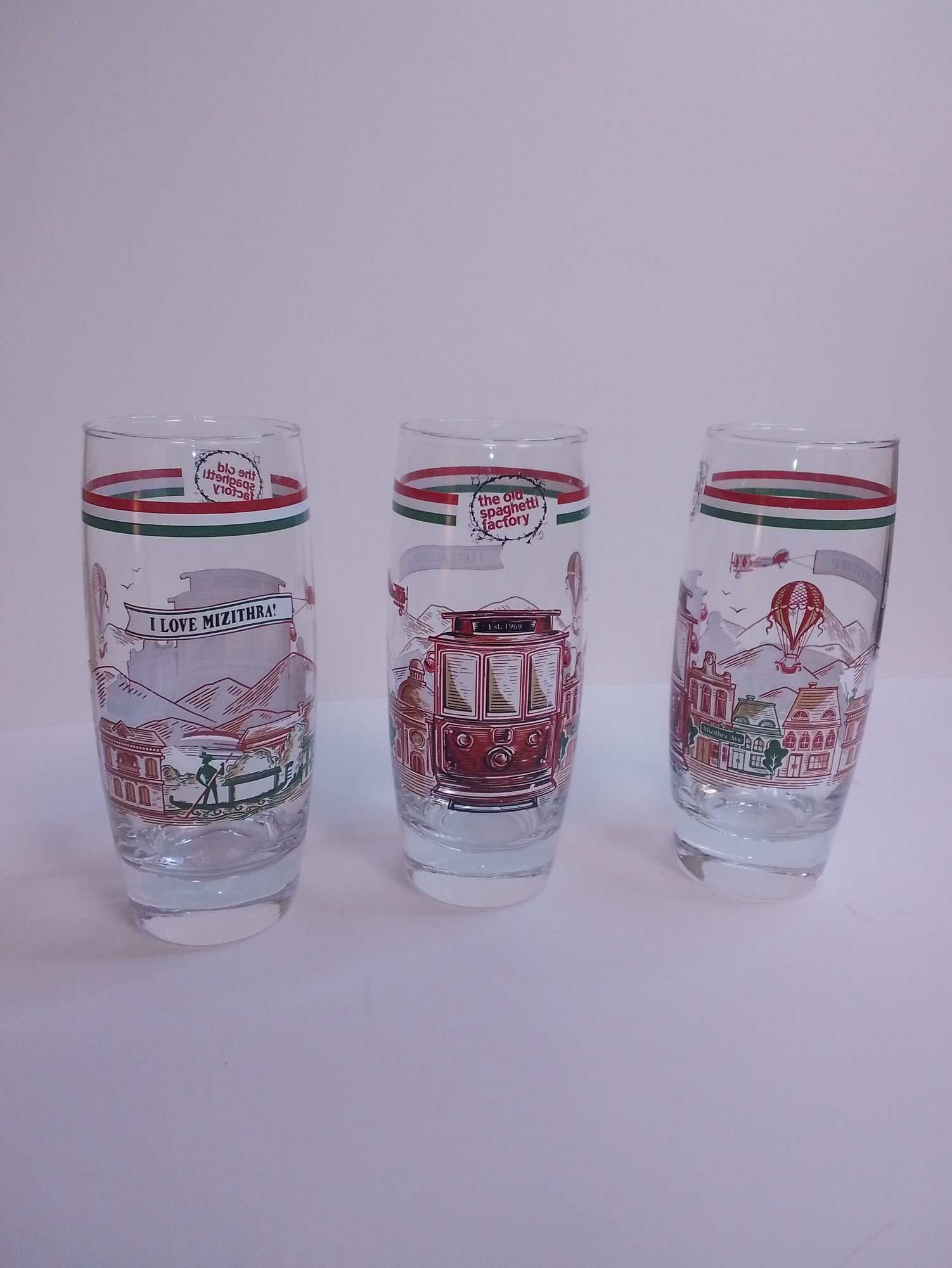 VINTAGE I LOVE MIZITHRIA 16 OZ OLD SPAGETTI FACTORY 6.38X2.18 GREAT CONDITION