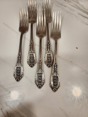 #2STERLING SILVER WALLACE ROSE POINT SET OF 5 DINNER FORKS 237.37GR