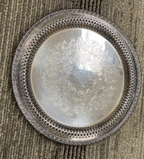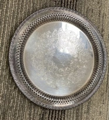 VINTAGE SILVER PLATTER FOR SERVING 10.5" FILLAGREE ETCHED
