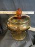 ELEVATED DISH TOPAZ IN COLOR WITH STEM AND LID (CANDY DISH 1960S)
