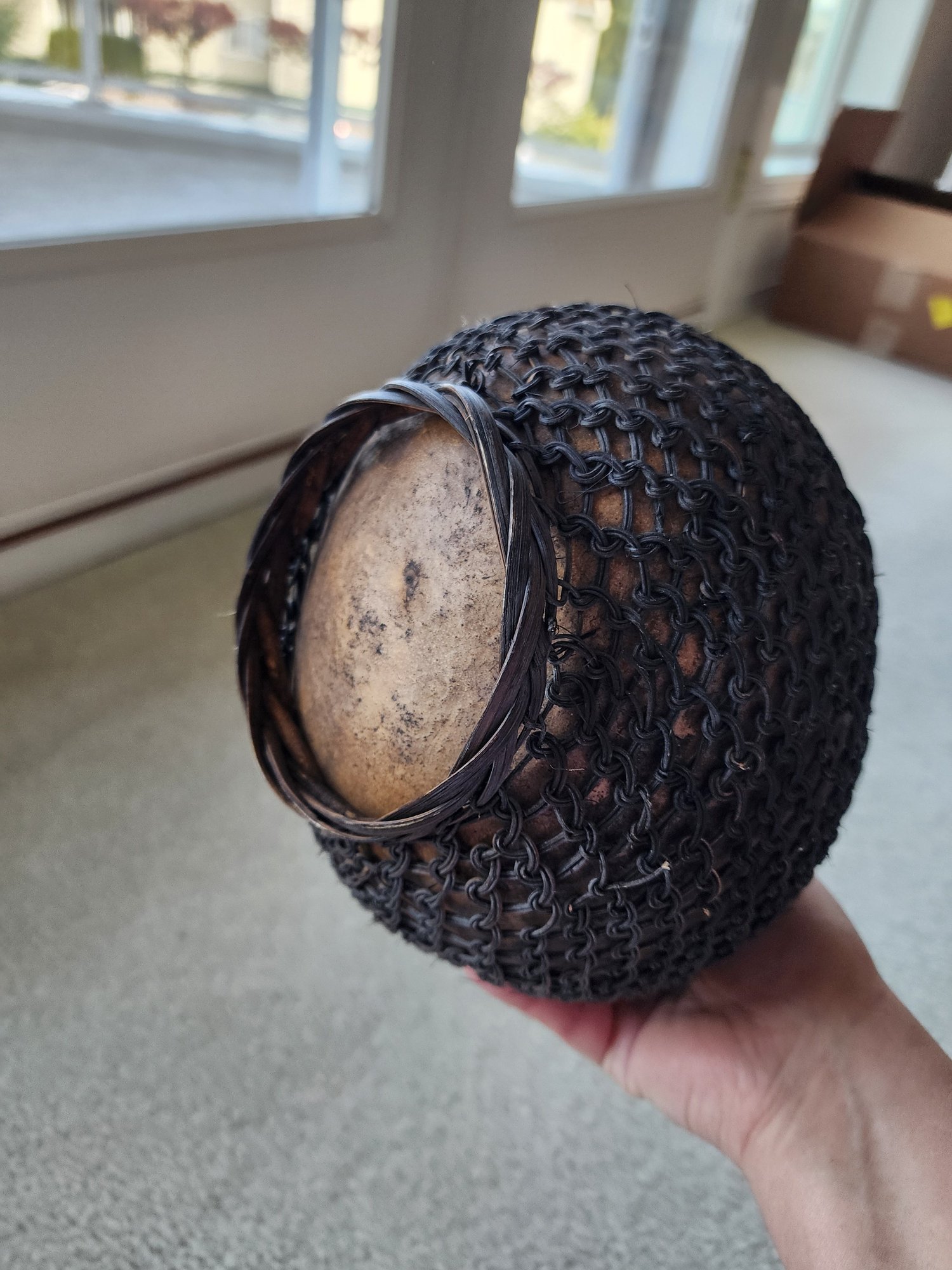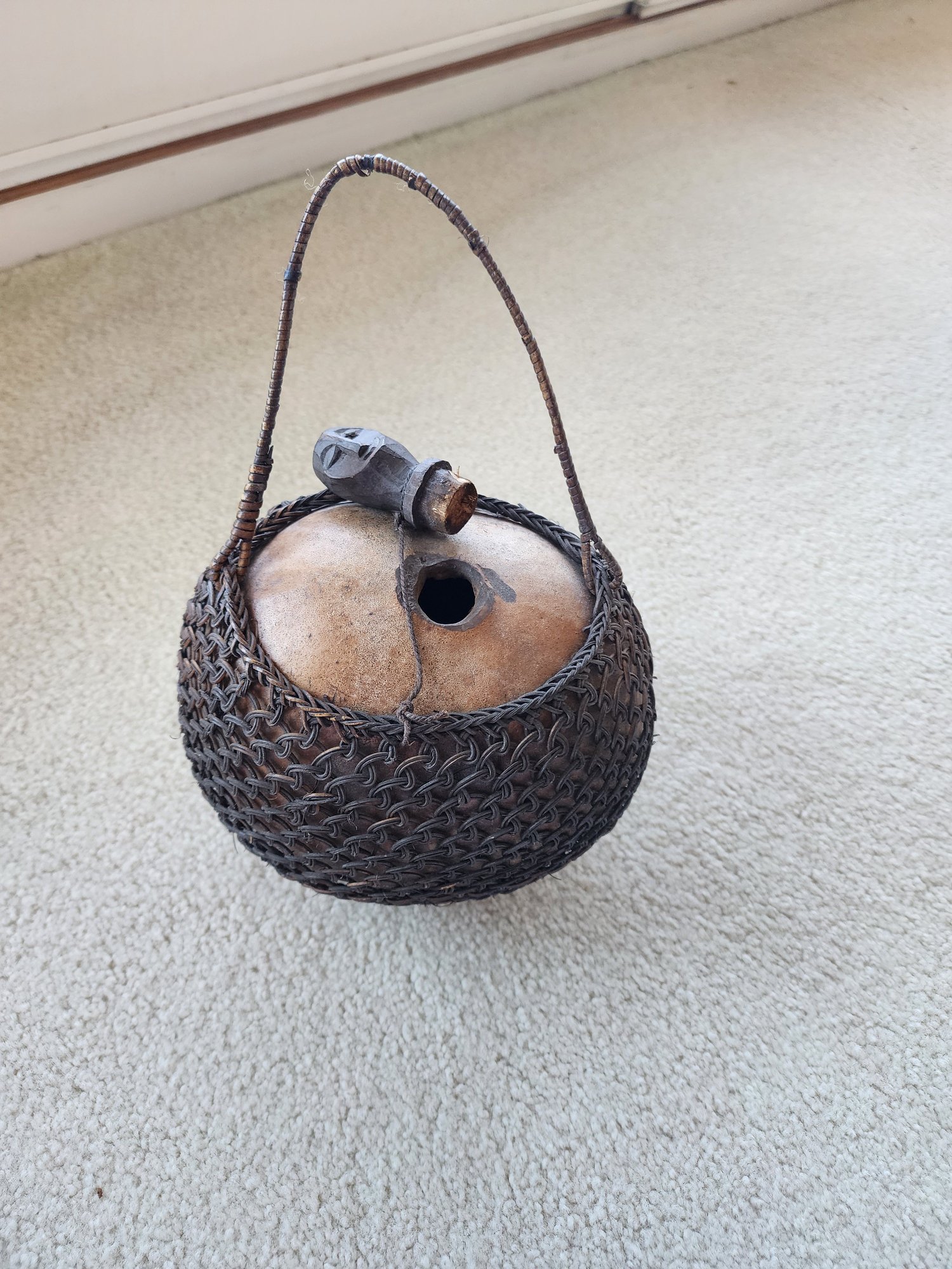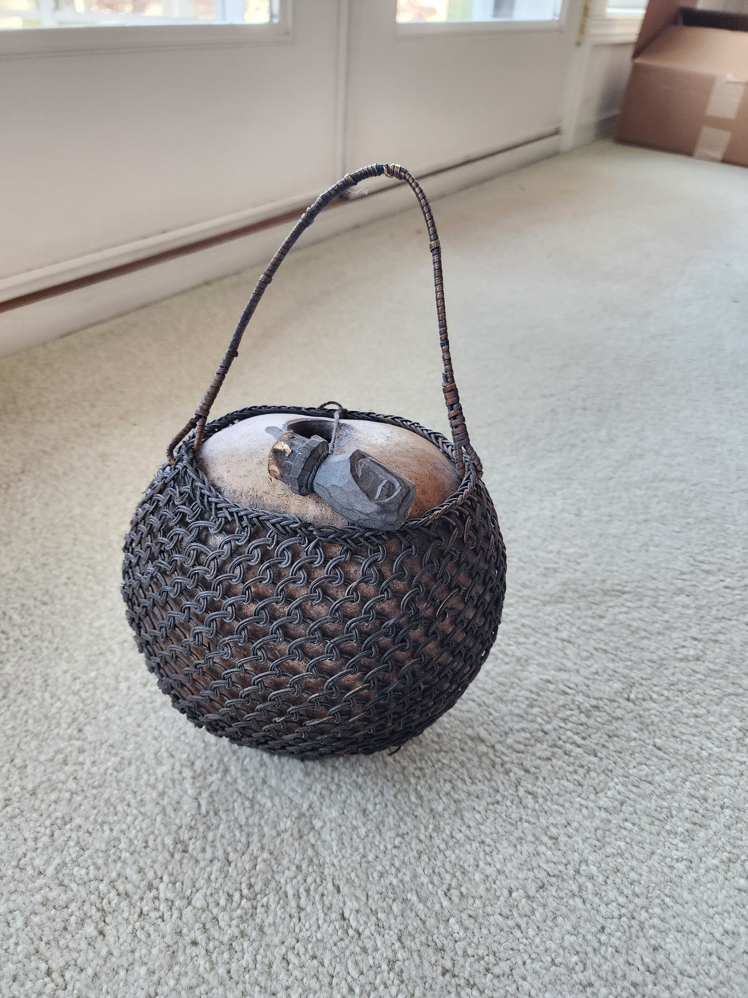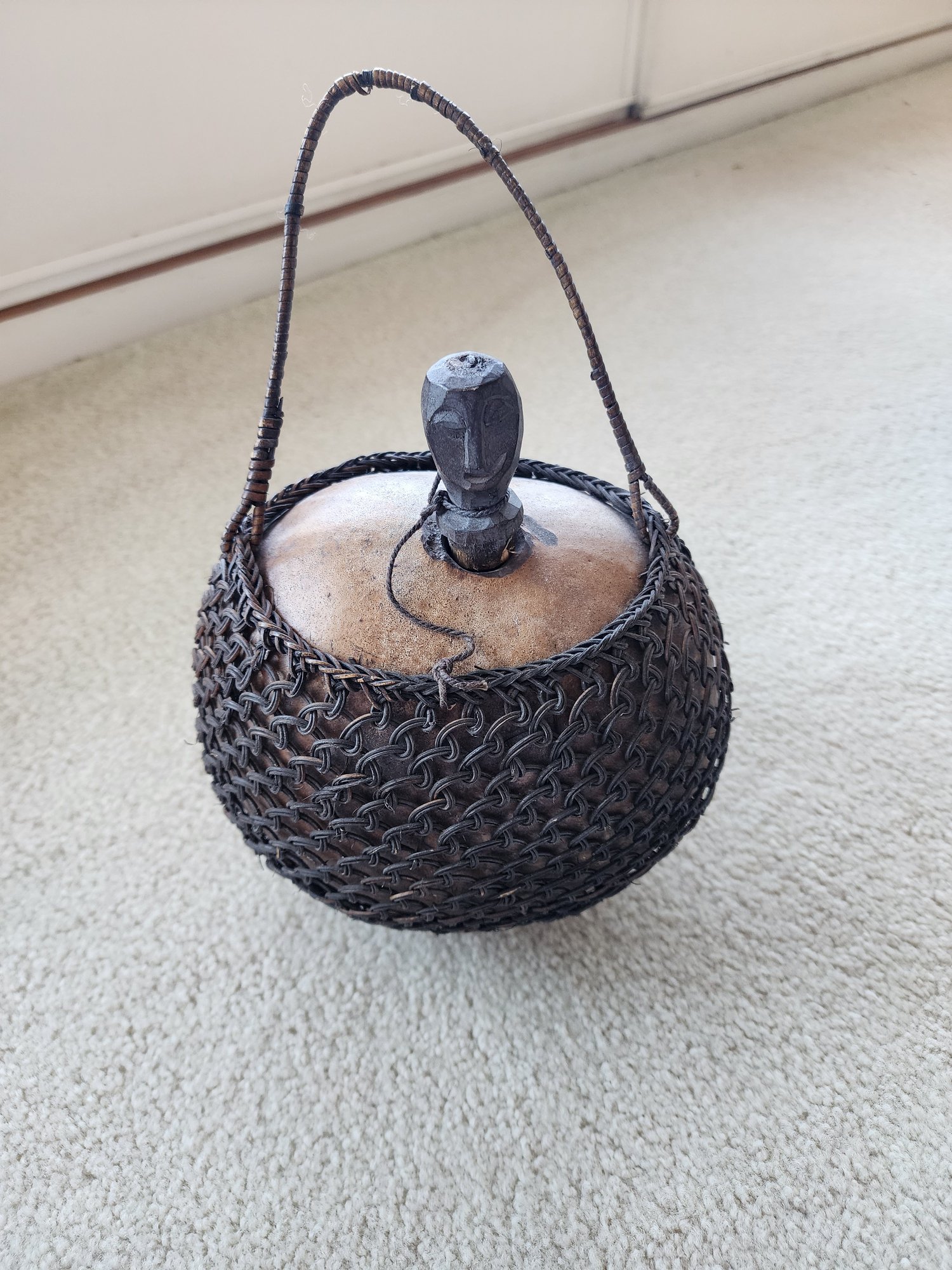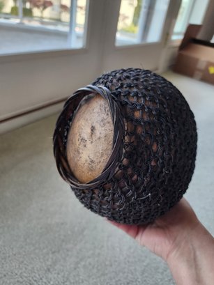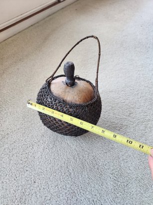 #32 Old Gourd Wrapped Basket With Hand Carved Cork Stopper