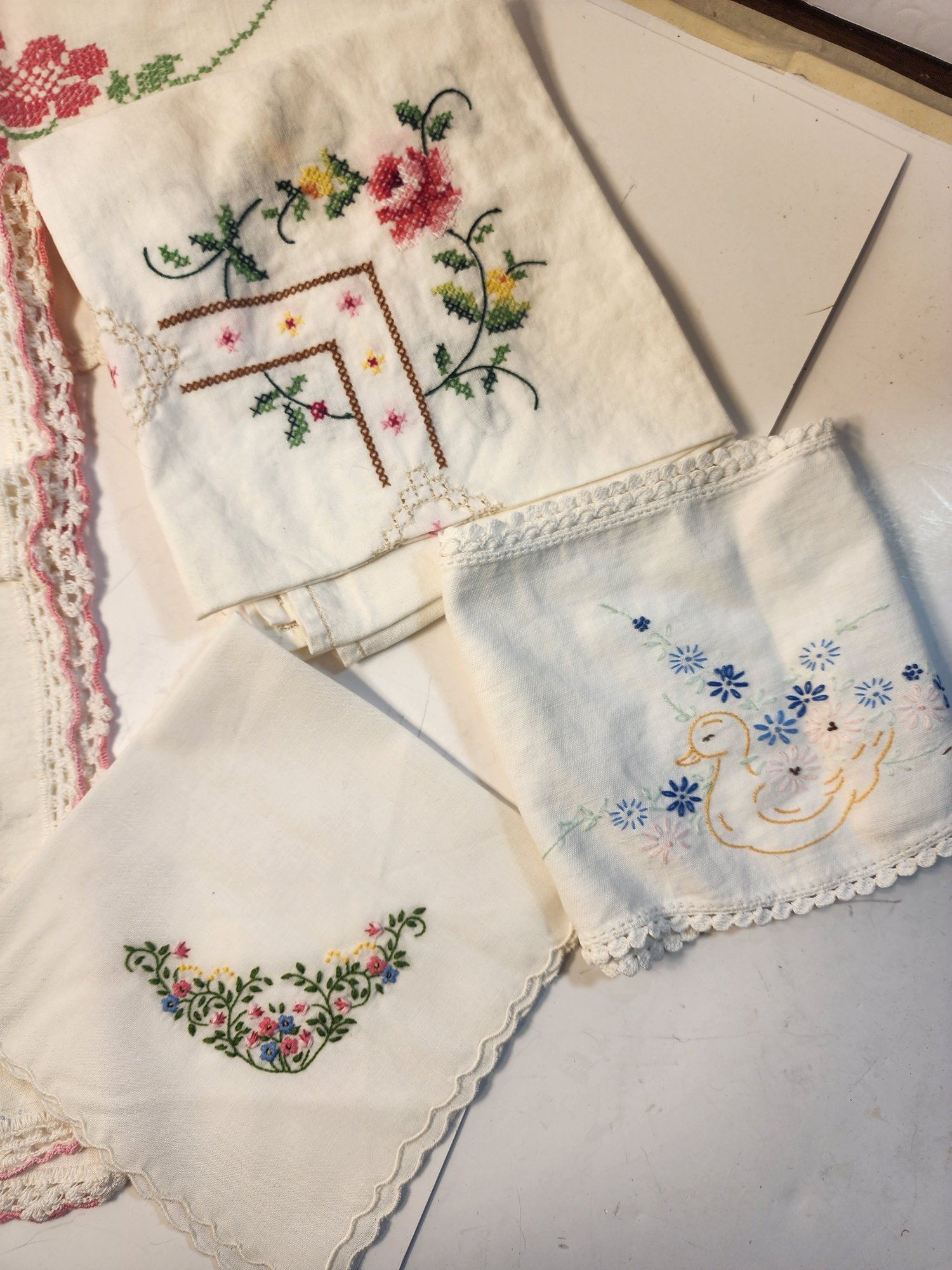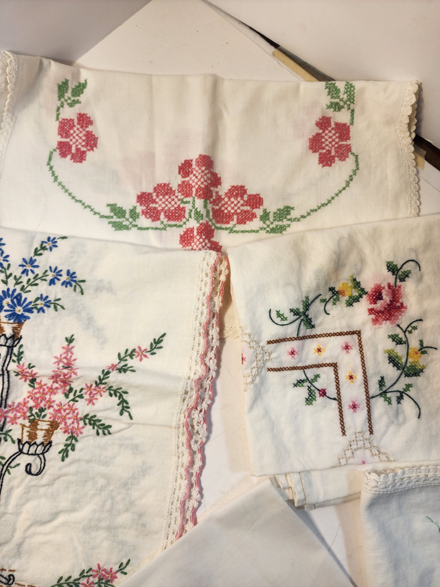 #37 Lot Of Embroidered Linens