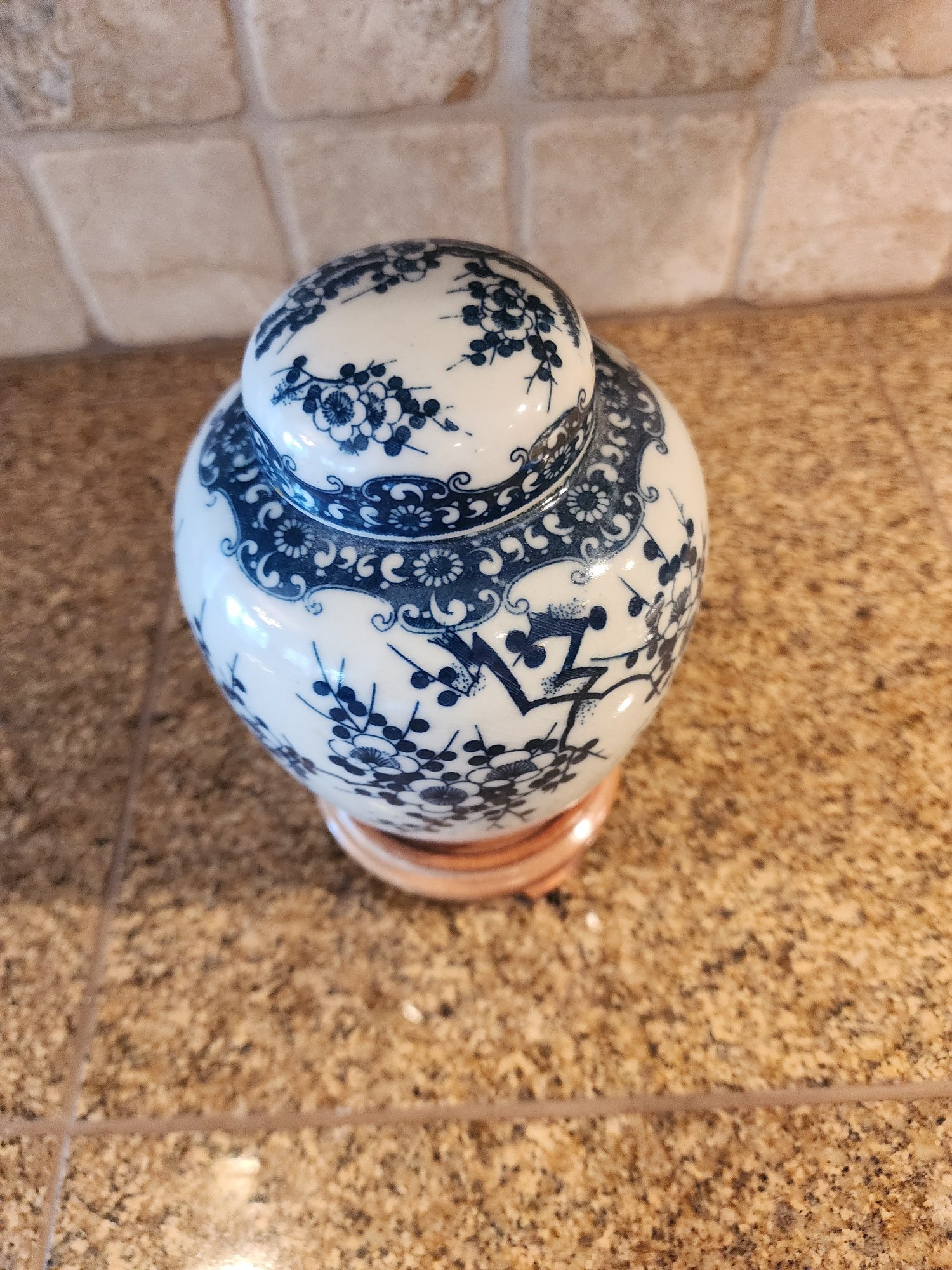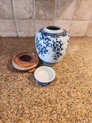 #39 Unmarked Vintage Hand Painted Ginger Jar On Stand