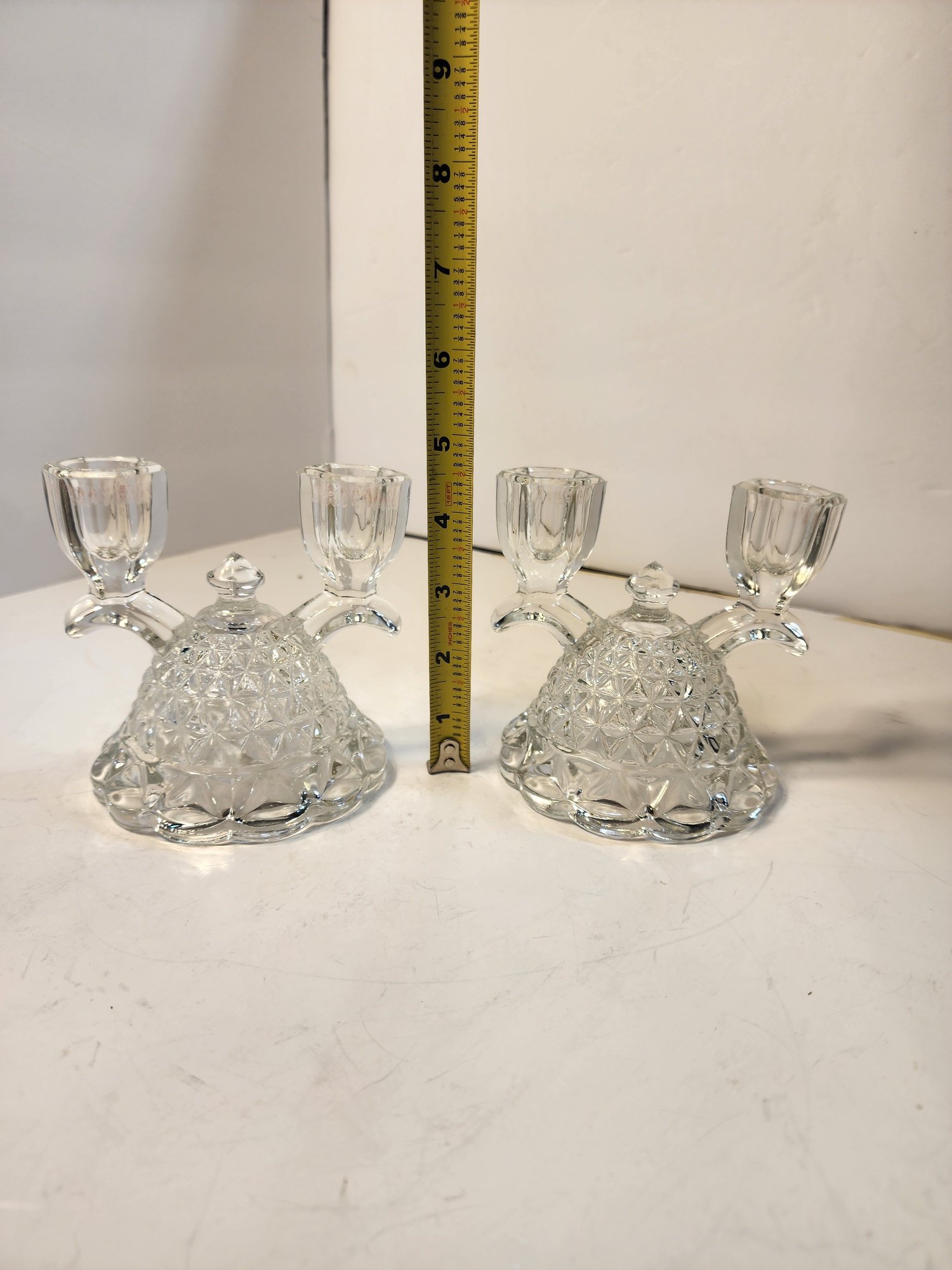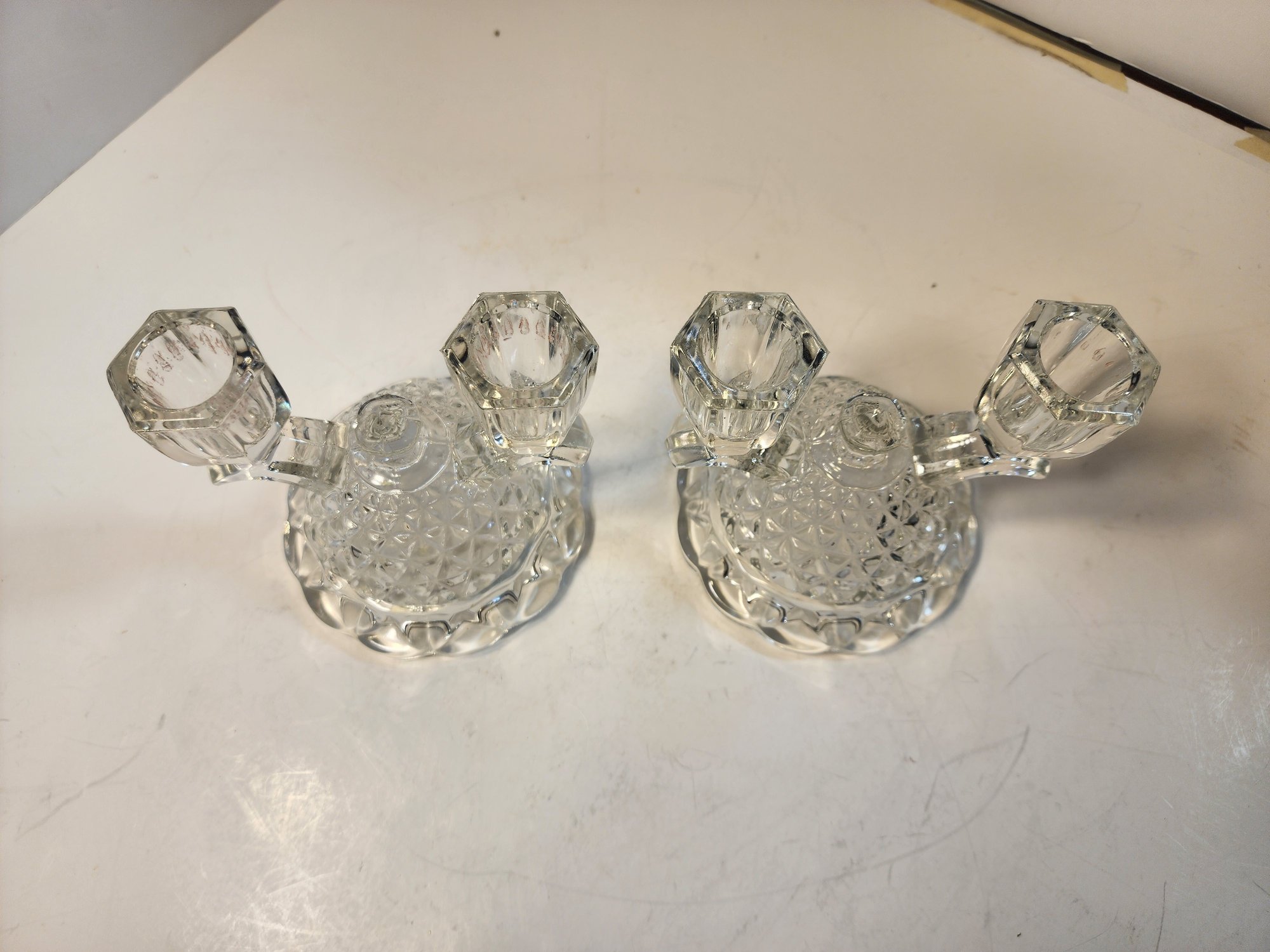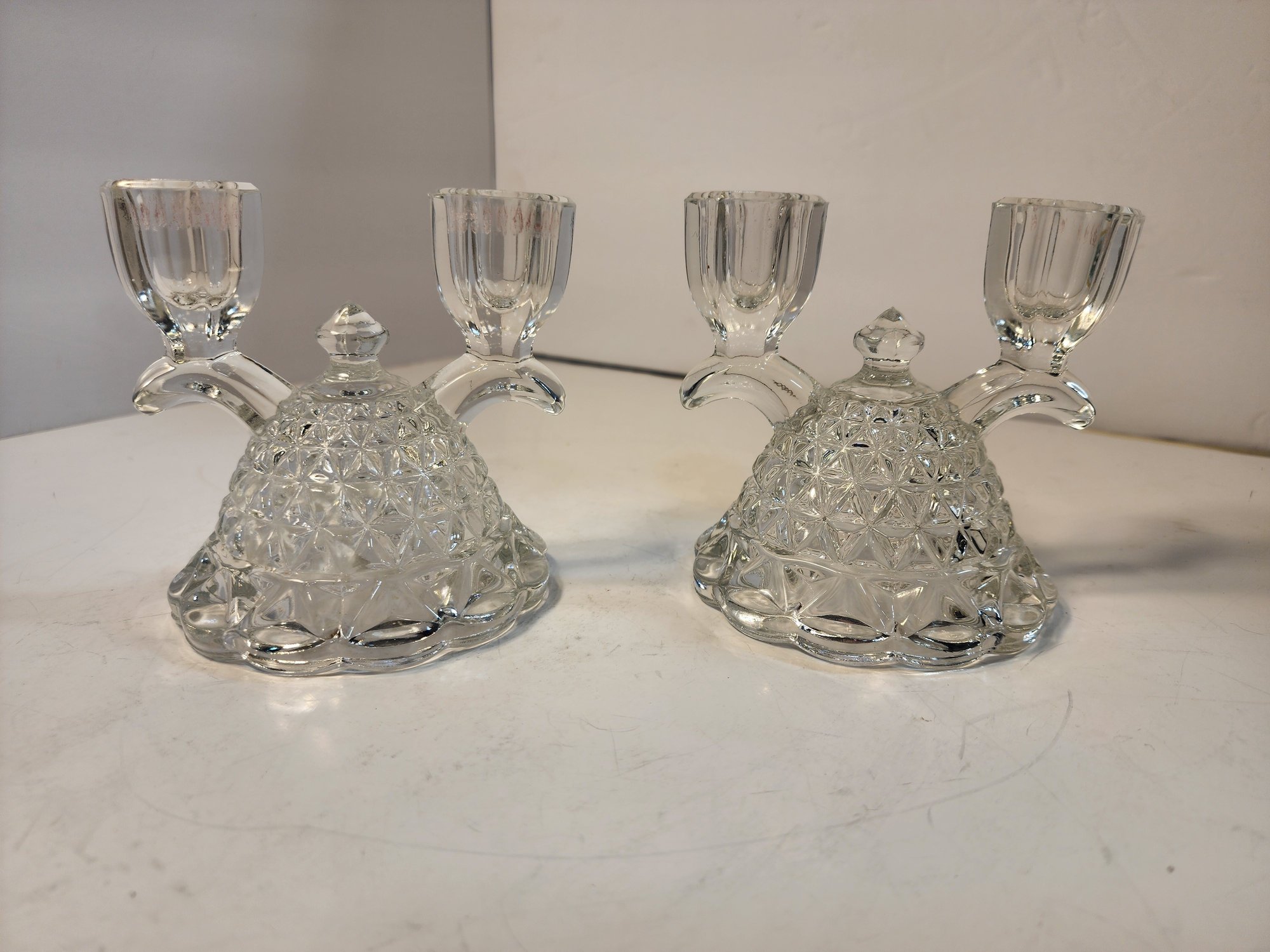 #43 2 Vintage Depression Glass Candle Holders