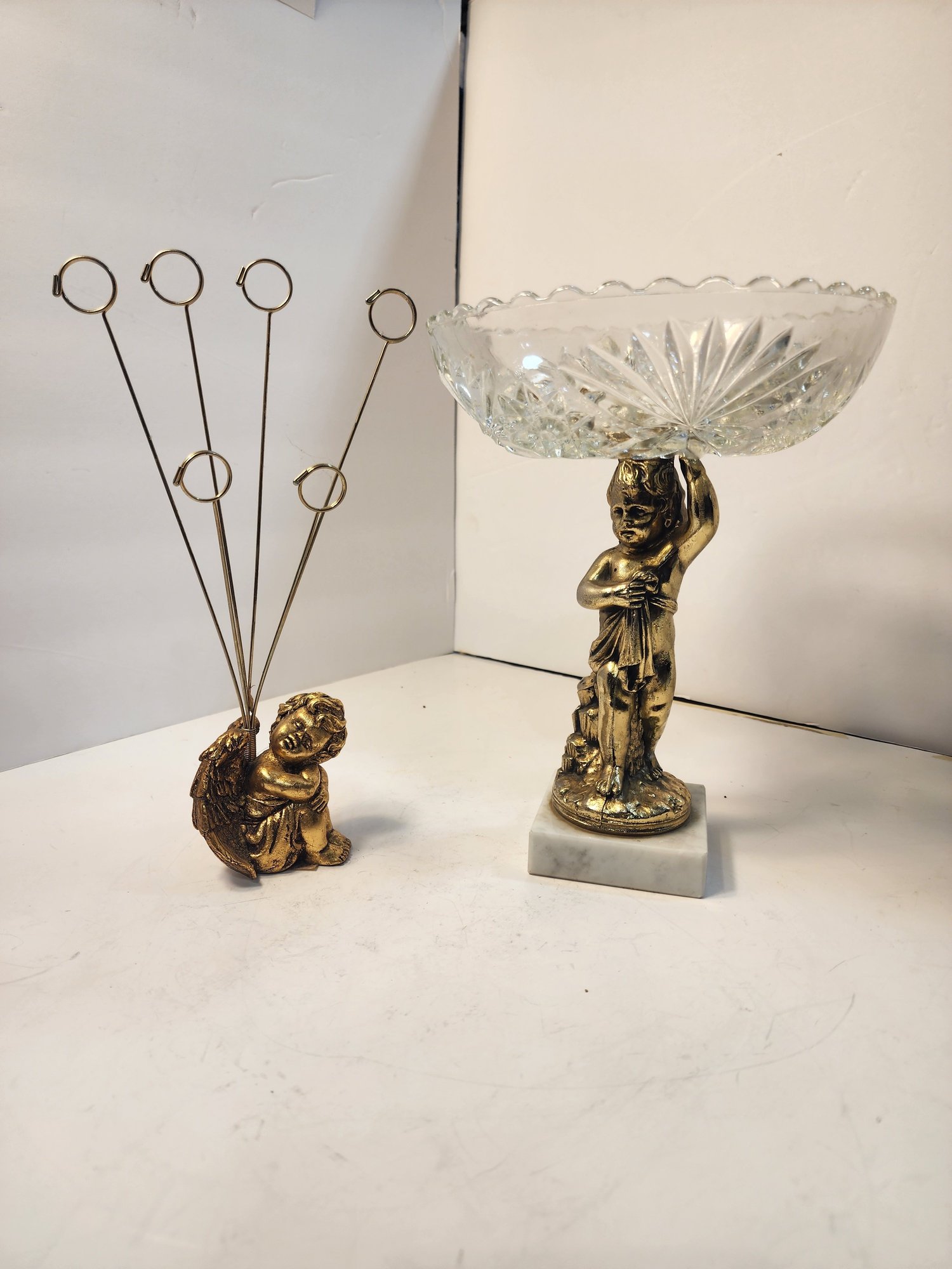 #44 Hollywood Regency Era Cherub Candy Dish And Newer Card Holder