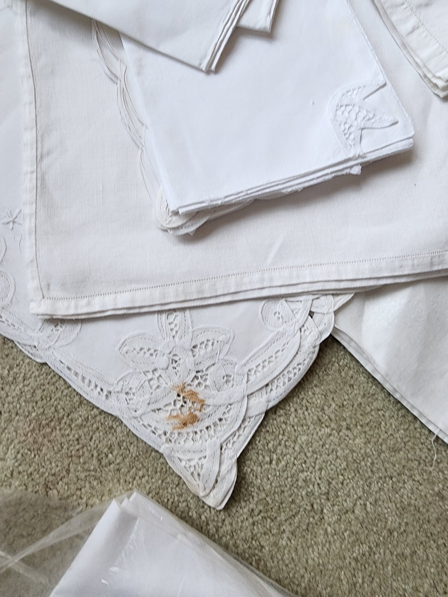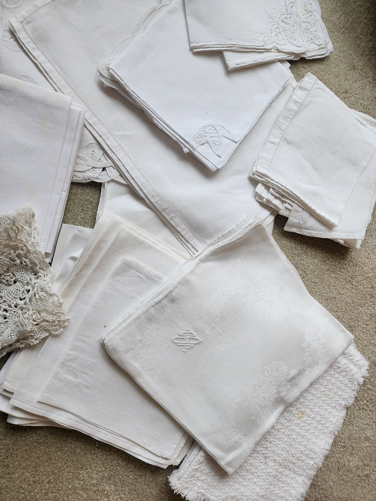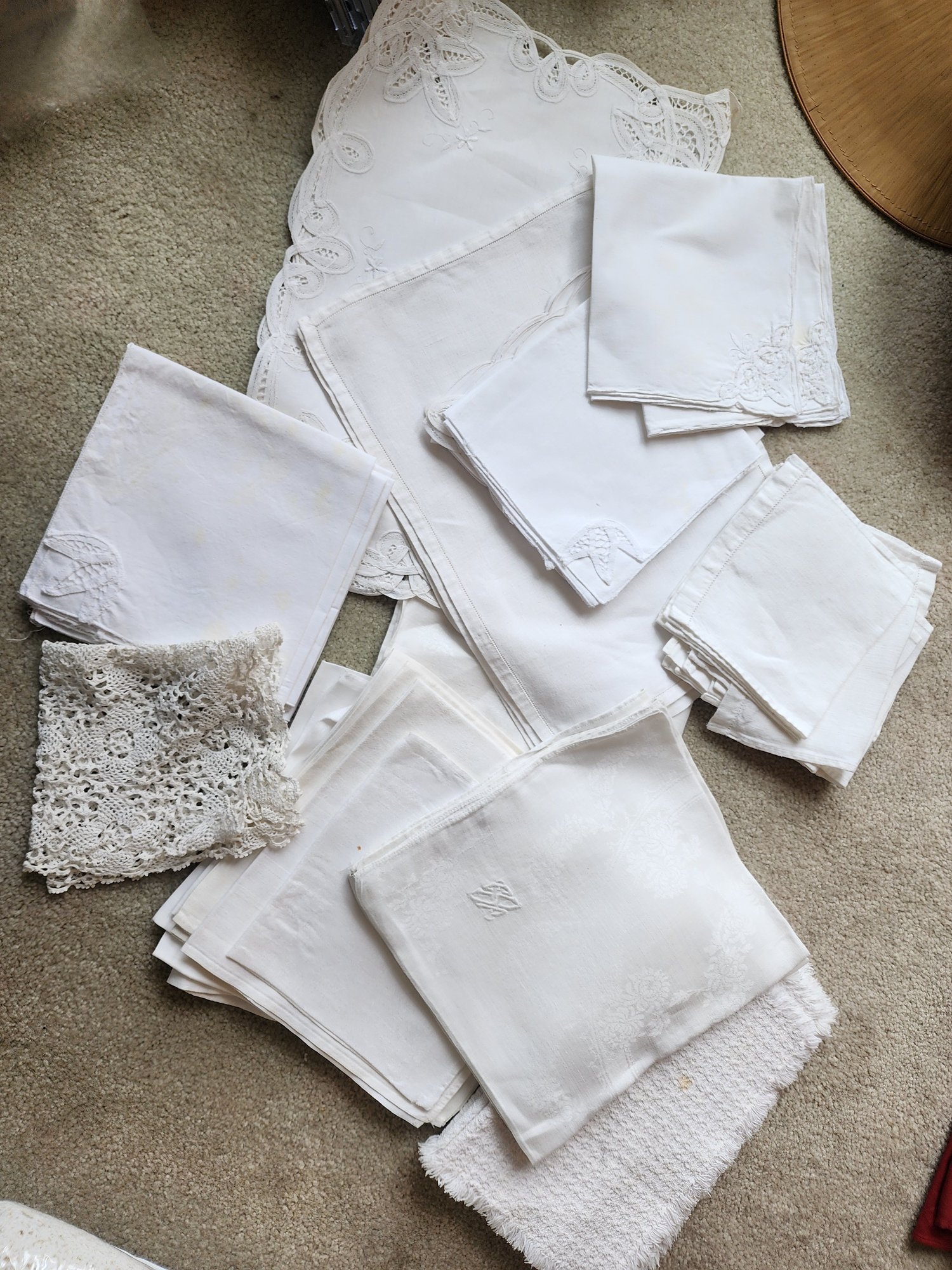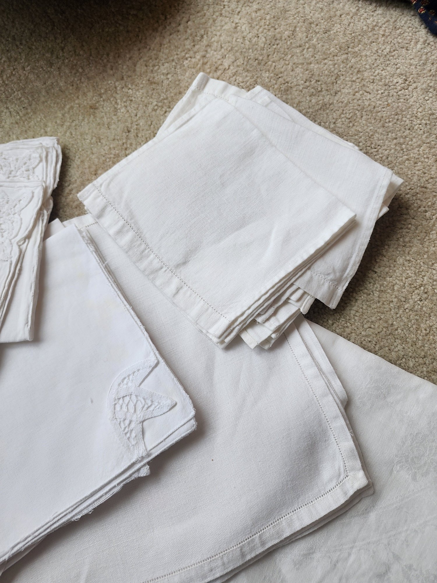 #48 Lot Of White Cotton Plain And Embroidered Vintage Napkins And Placemats