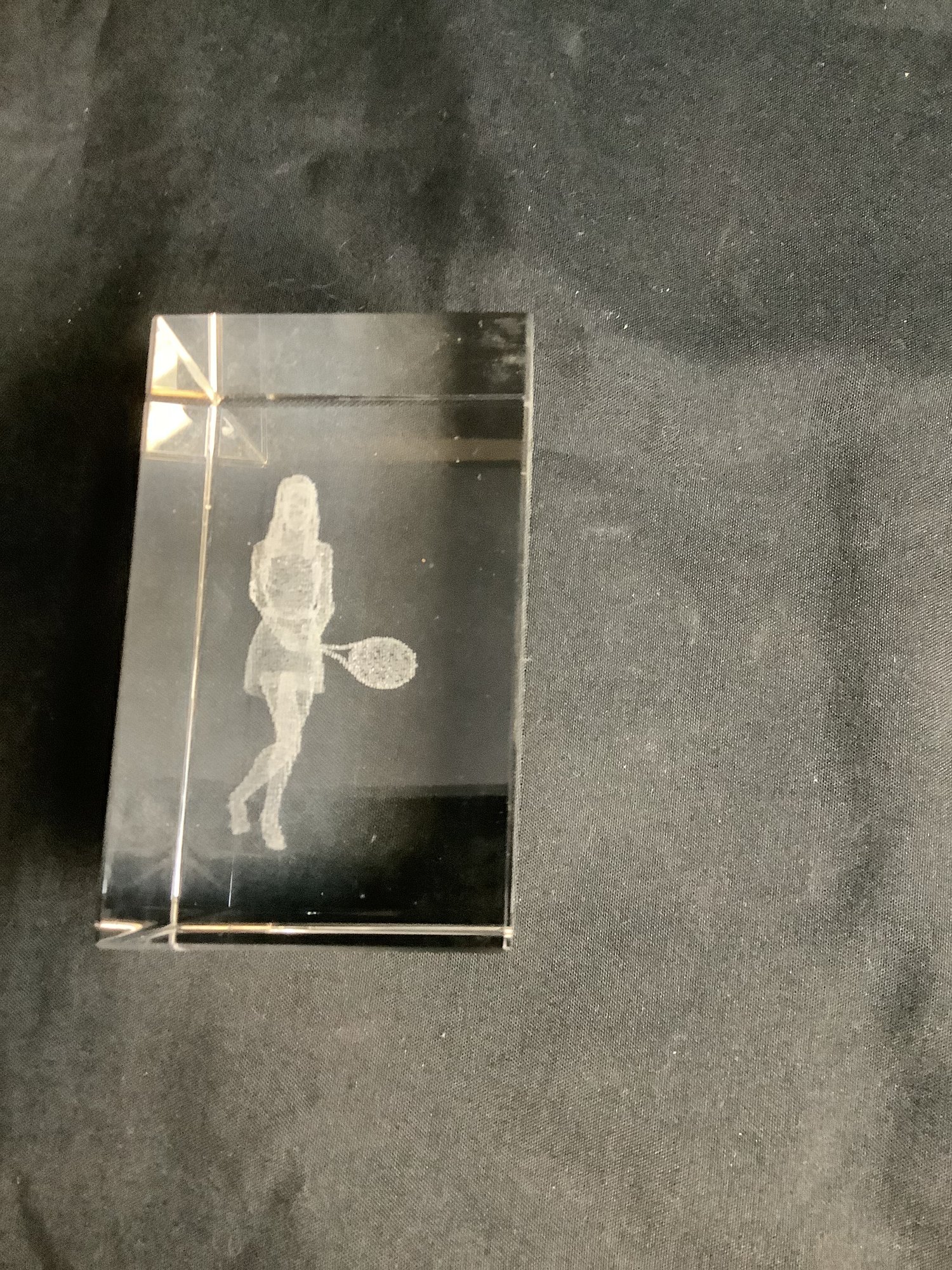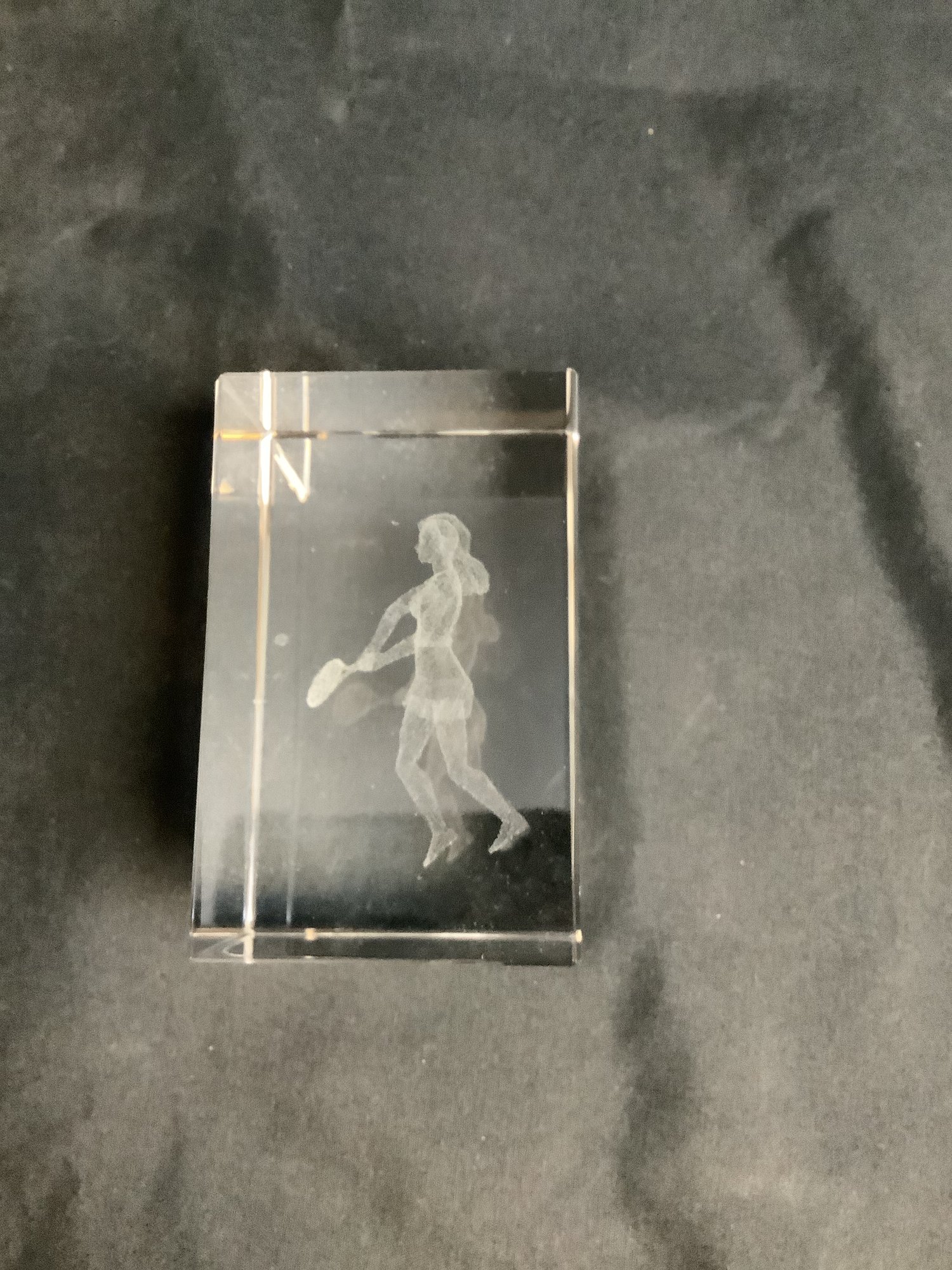 LASER ETCHED FIGURE OF TENNIS OR PICKELBALL PLAYER FEMALE/SKIRT