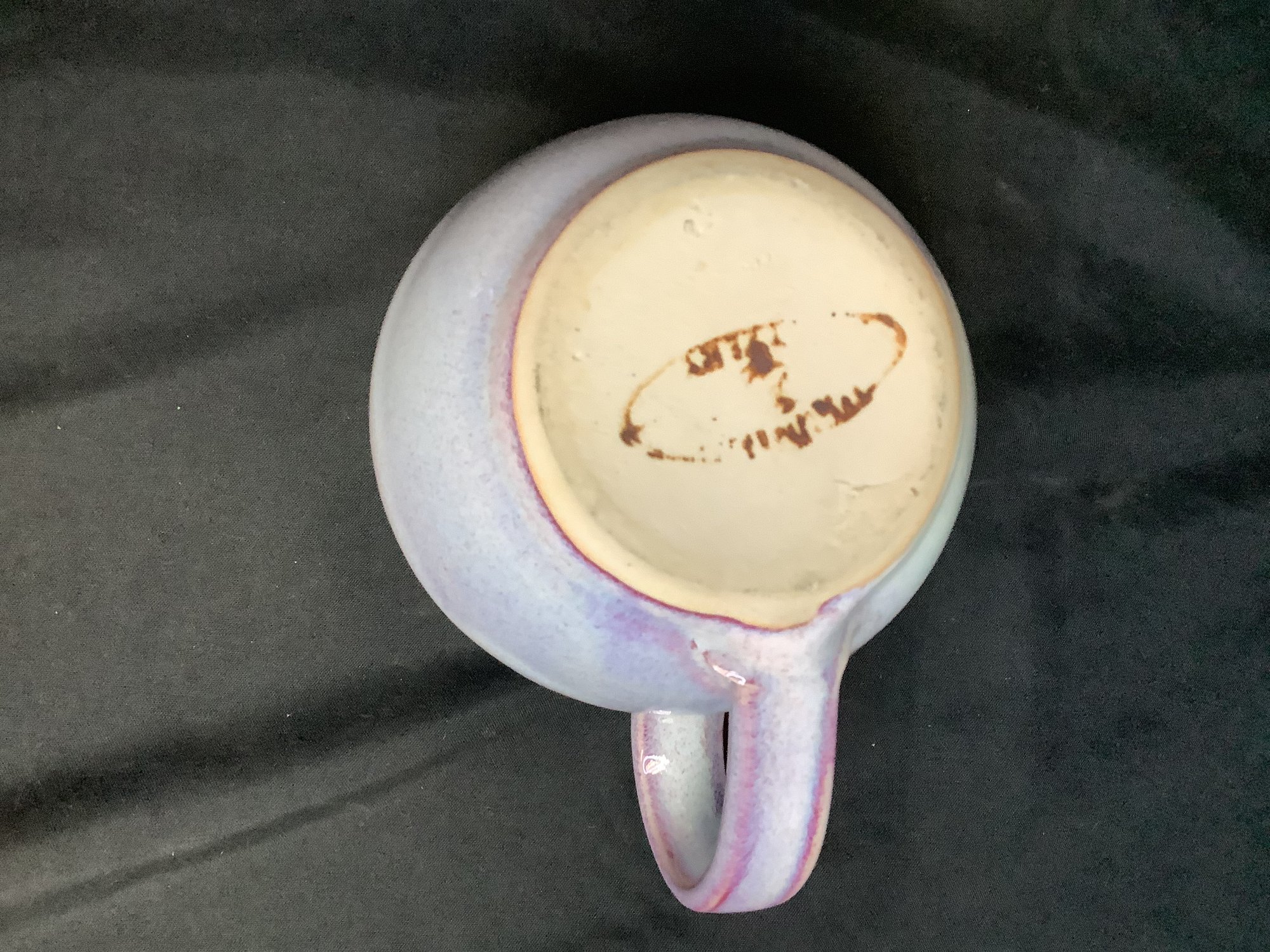 HANDMADE LAVENDER MUG GLAZZED WITH LAVENDER AND BLUE. MADE OF CLAY