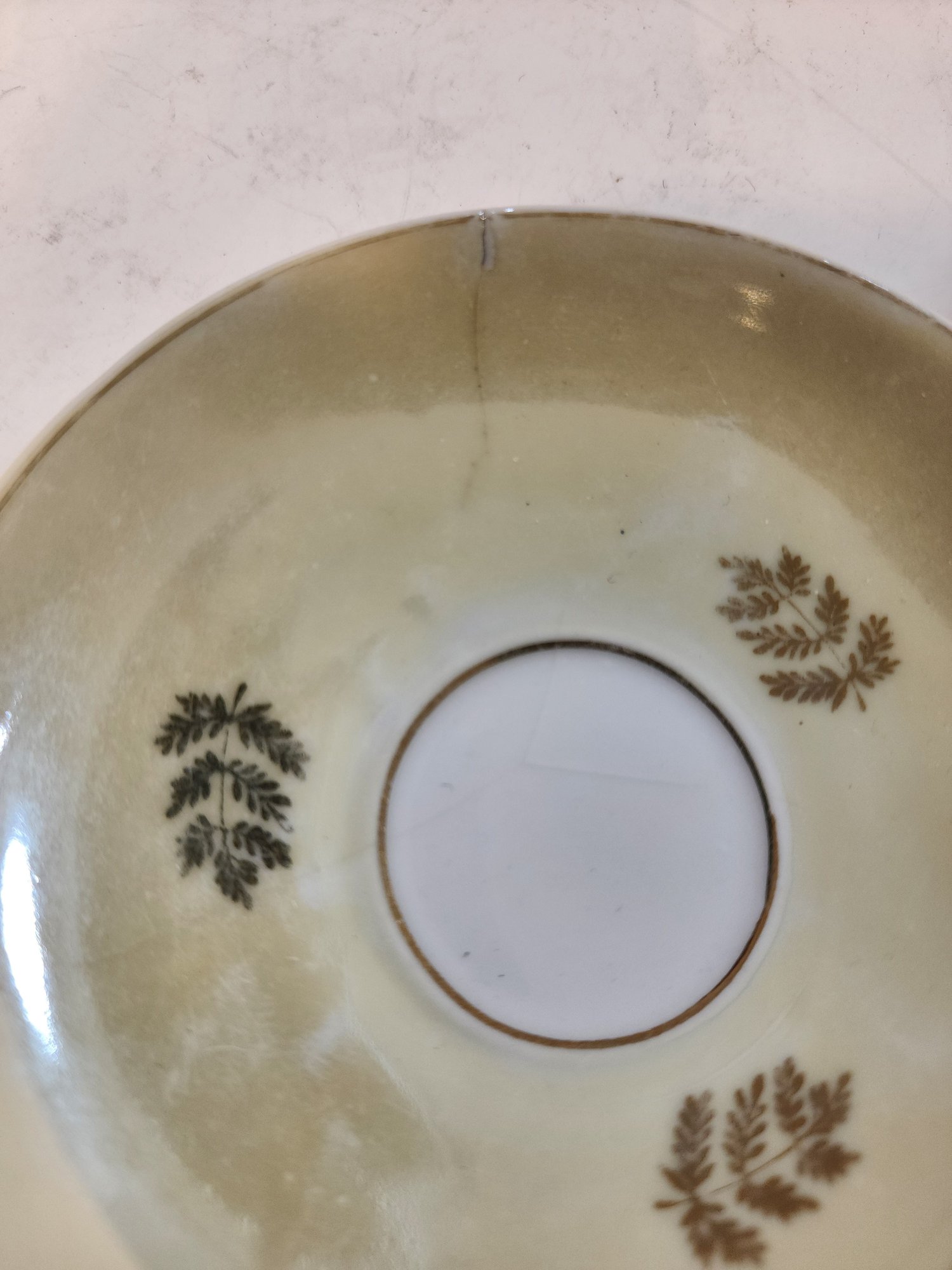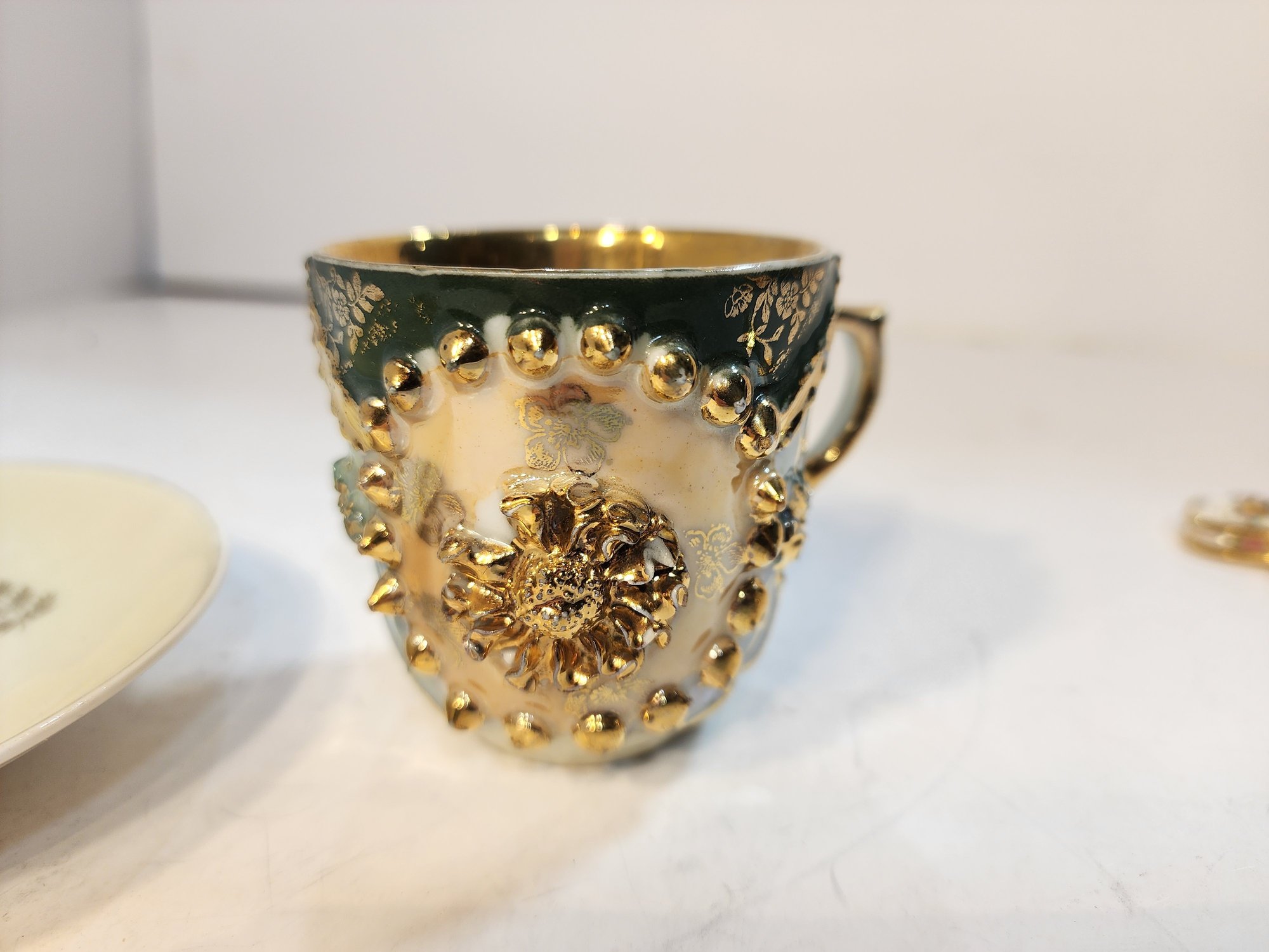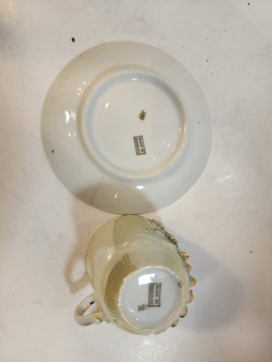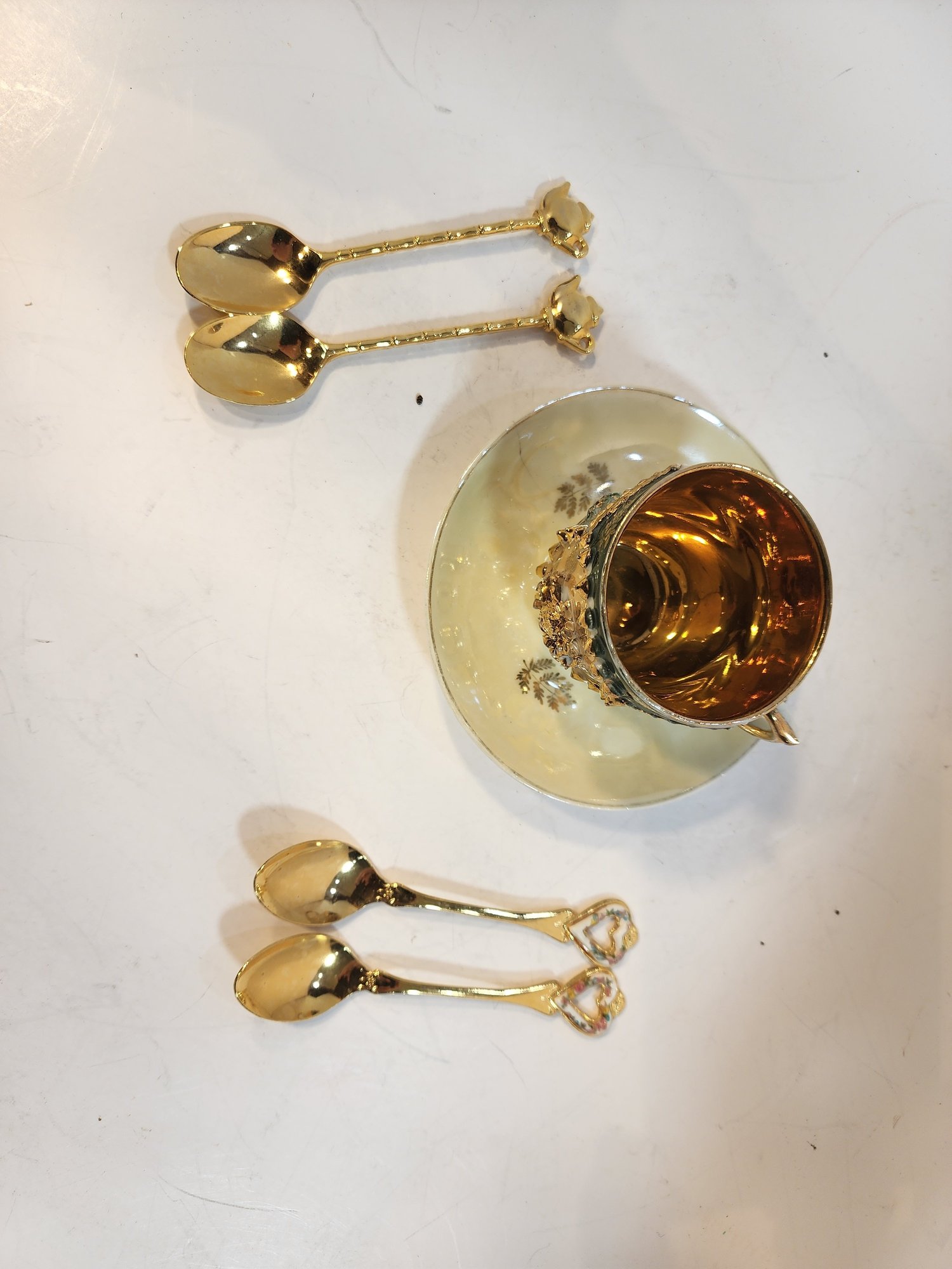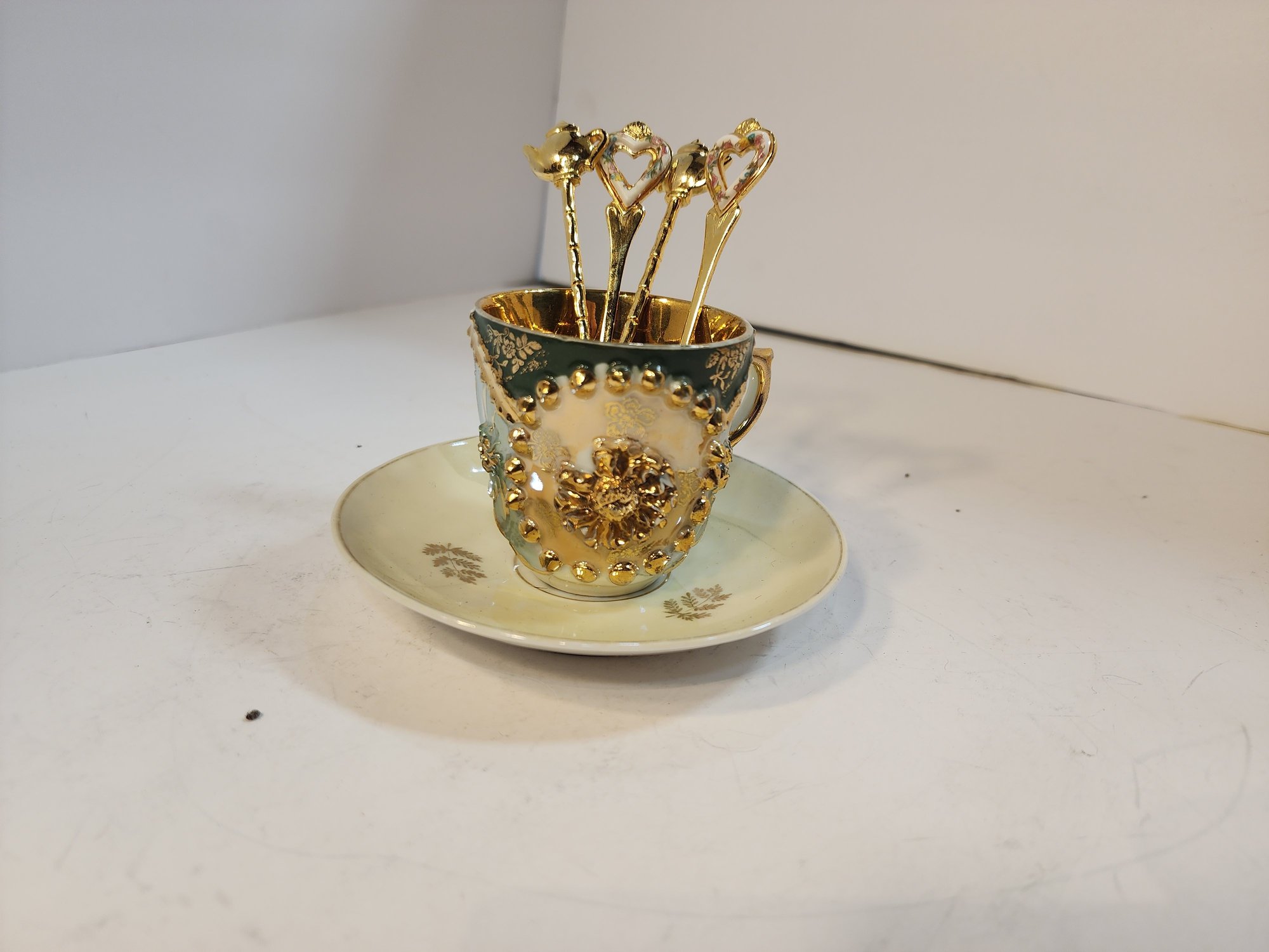 #56 Beautiful Teacup And 4 Gold Teaspoons. All Pretty. Saucer Has A Crack In It