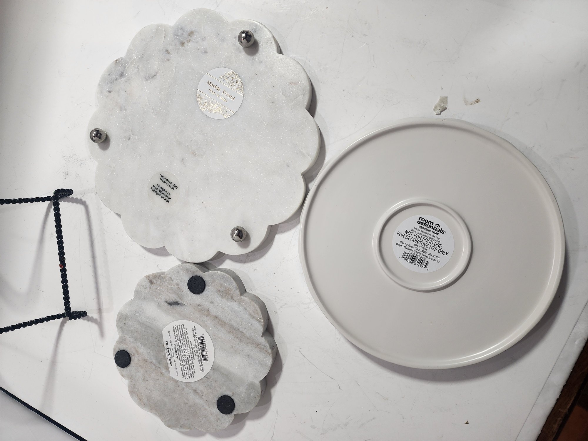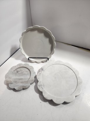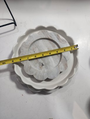 #6 2 MARBLE TRIVETS AND A BAKING DISH