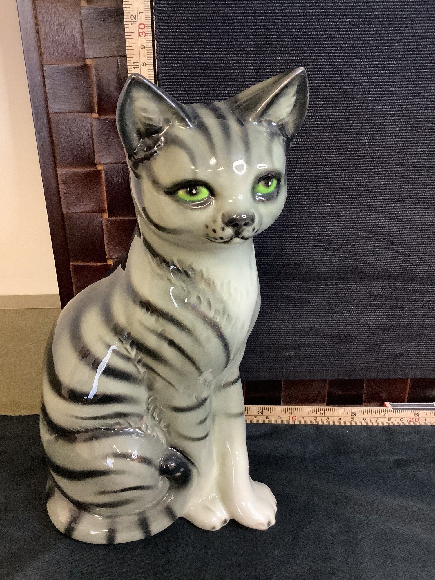 BLACK AND WHITE WITH AMZAING GREEN EYES. 10.5" TALL