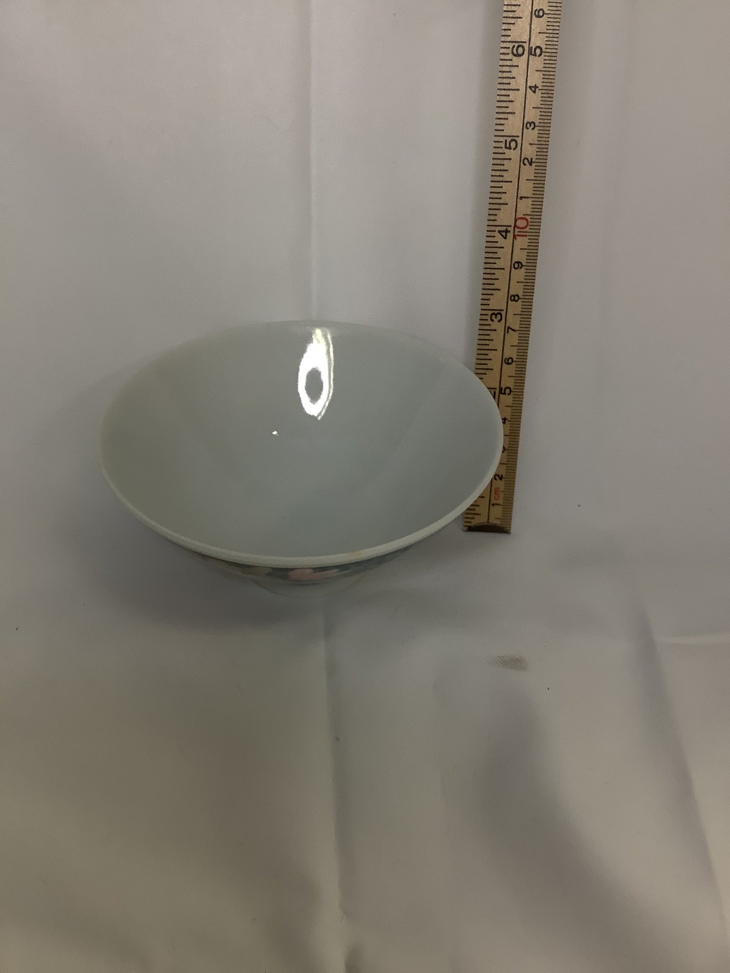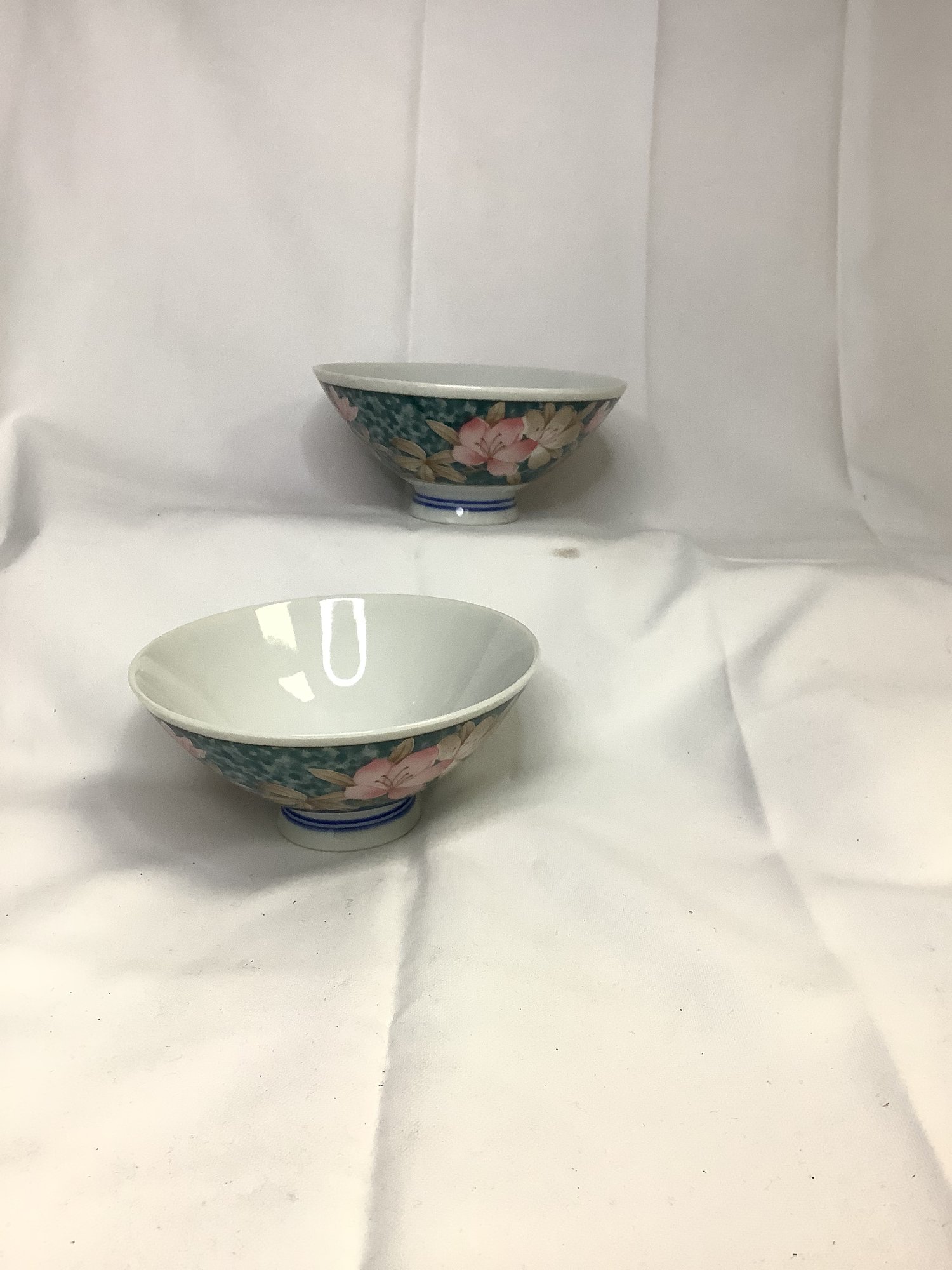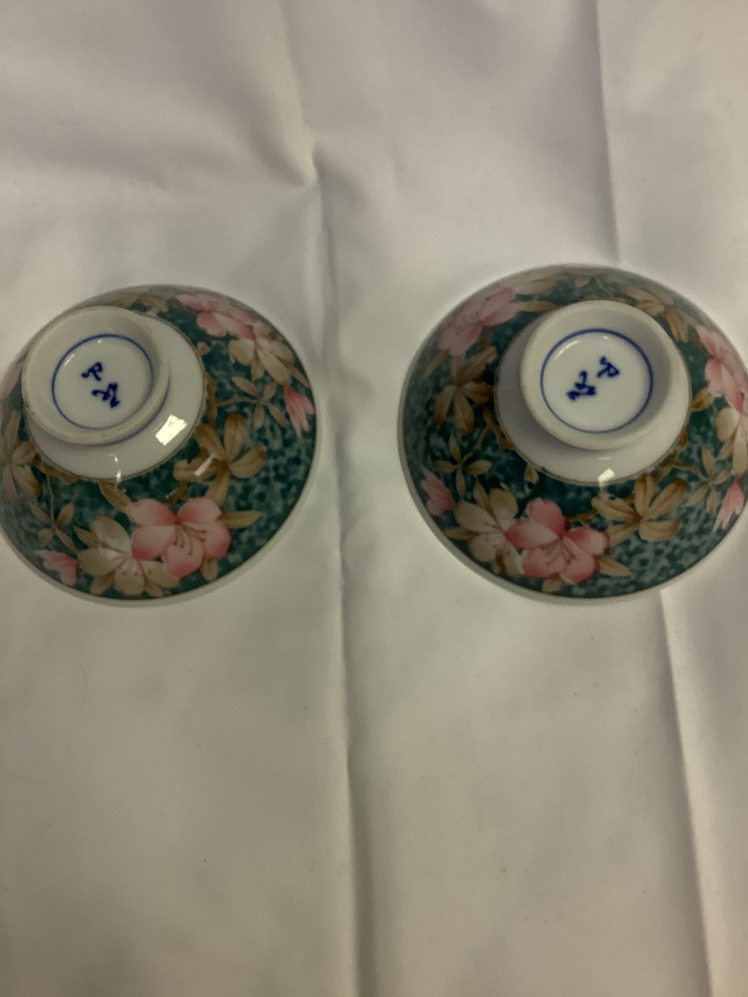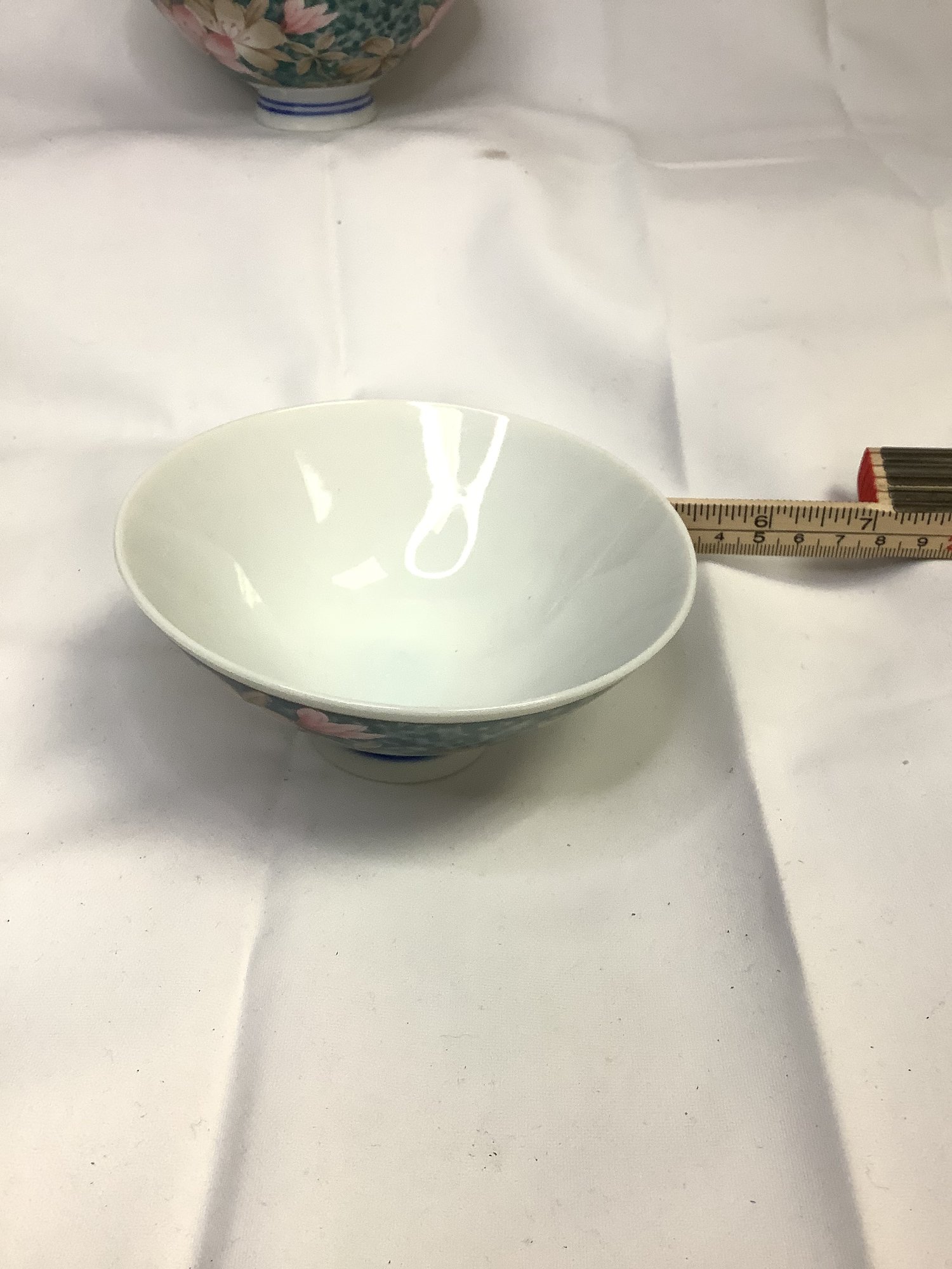 FLORAL PATTEREN ON FOREST GREEN BACKGROUND SMALL PEDISTOOL VASE 2 1/4 TALL, 4.5 WIDE