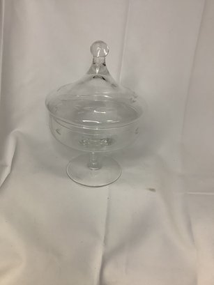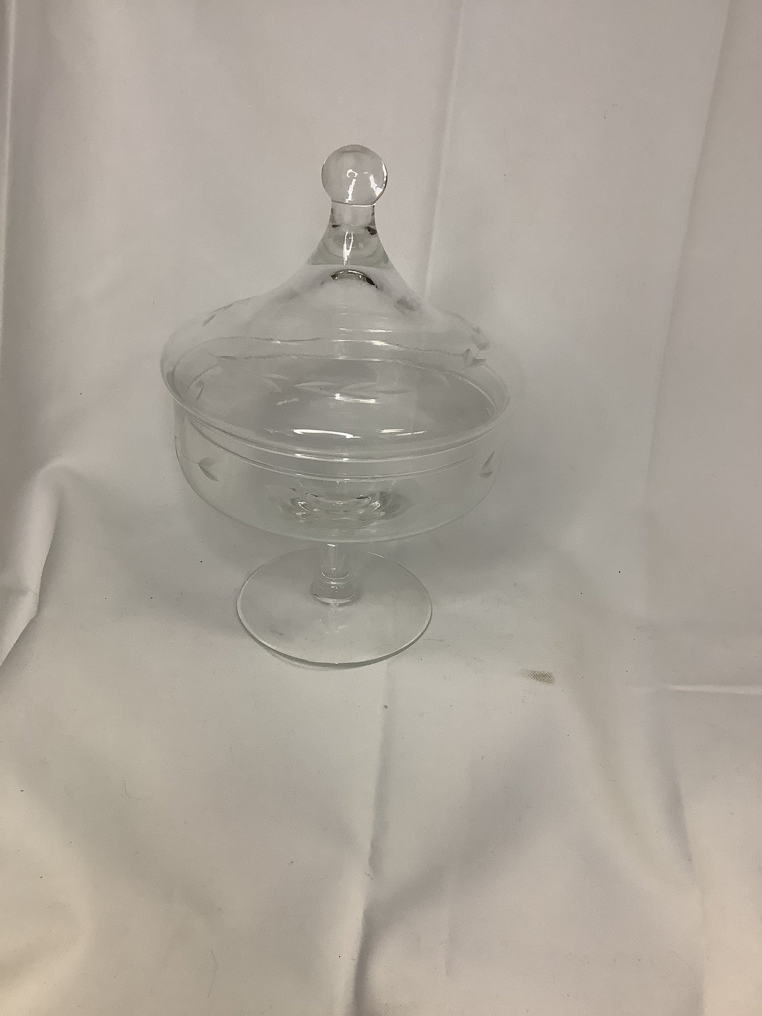 CRYSTAL DISH WITH HAND IVY PATTER ON SIDE AND FITTLED LIKE ELEGANT BULBUS TOP