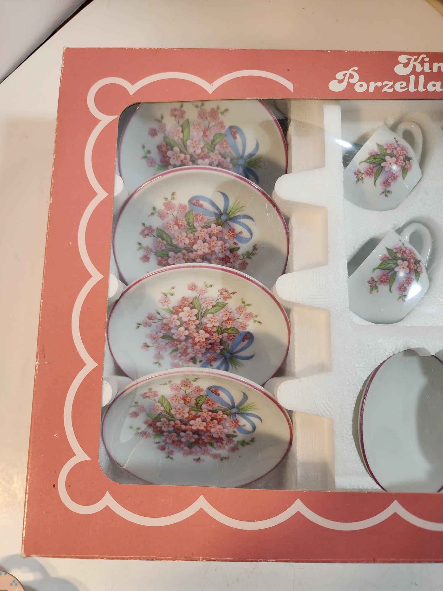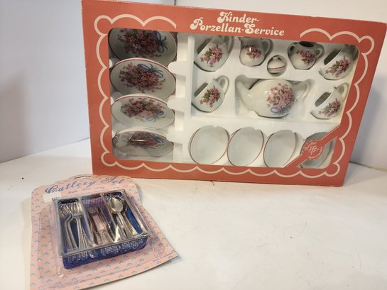 #77 Porcelain Tea Set New In Box For Children With Cutlery Set