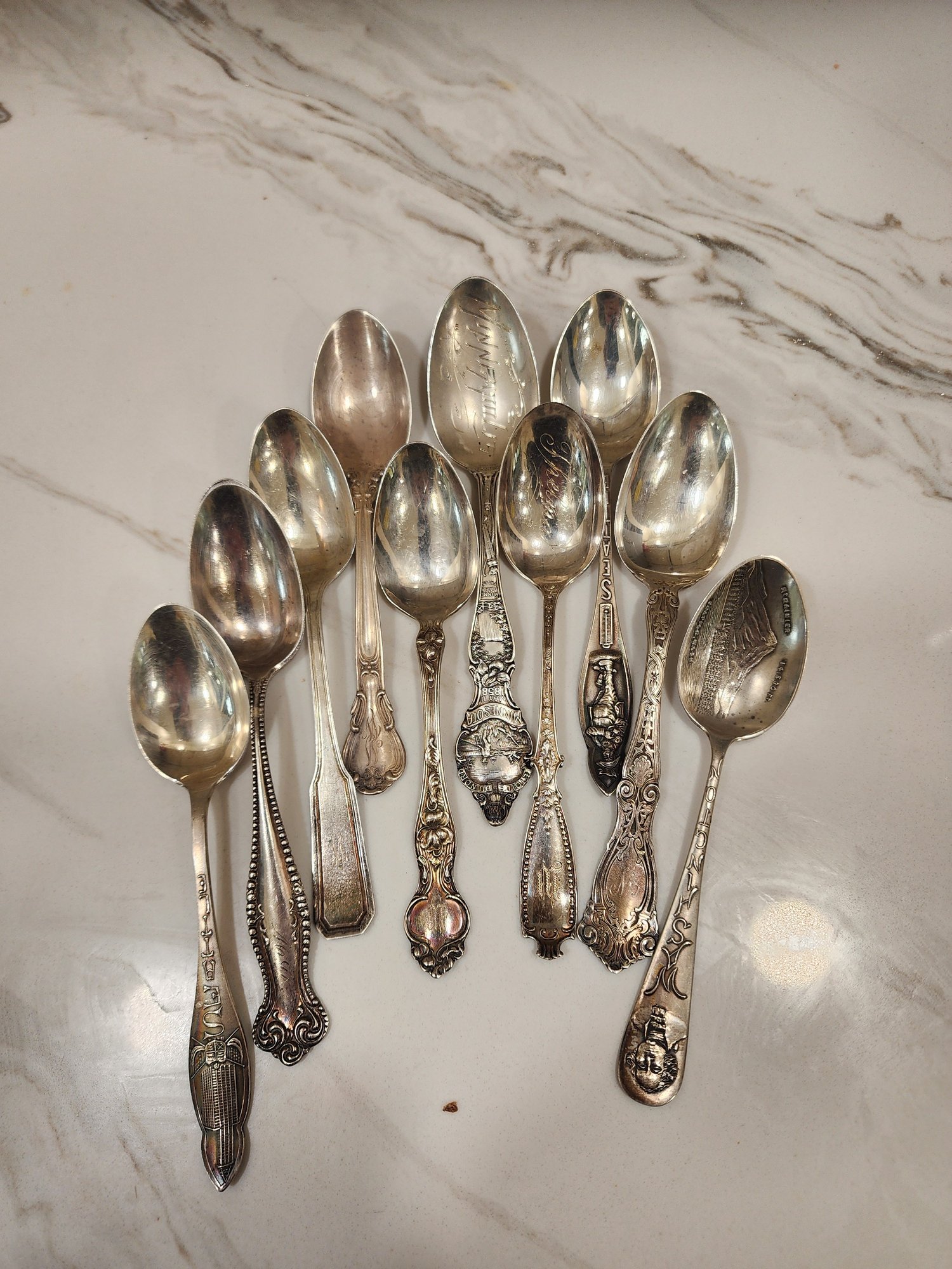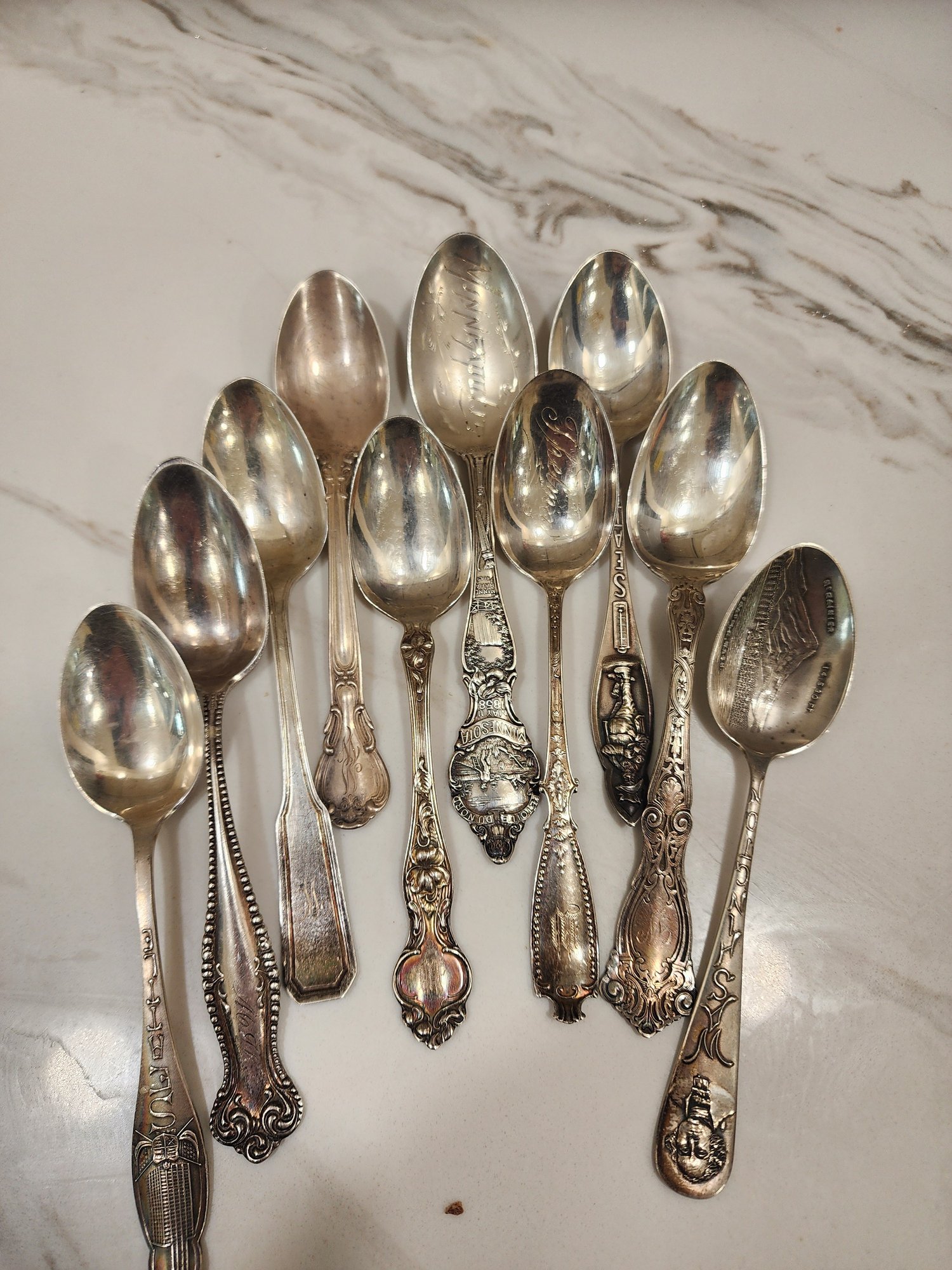 #8 9 STERLING SILVER COLLECTOR SPOONS 189.17 GR.