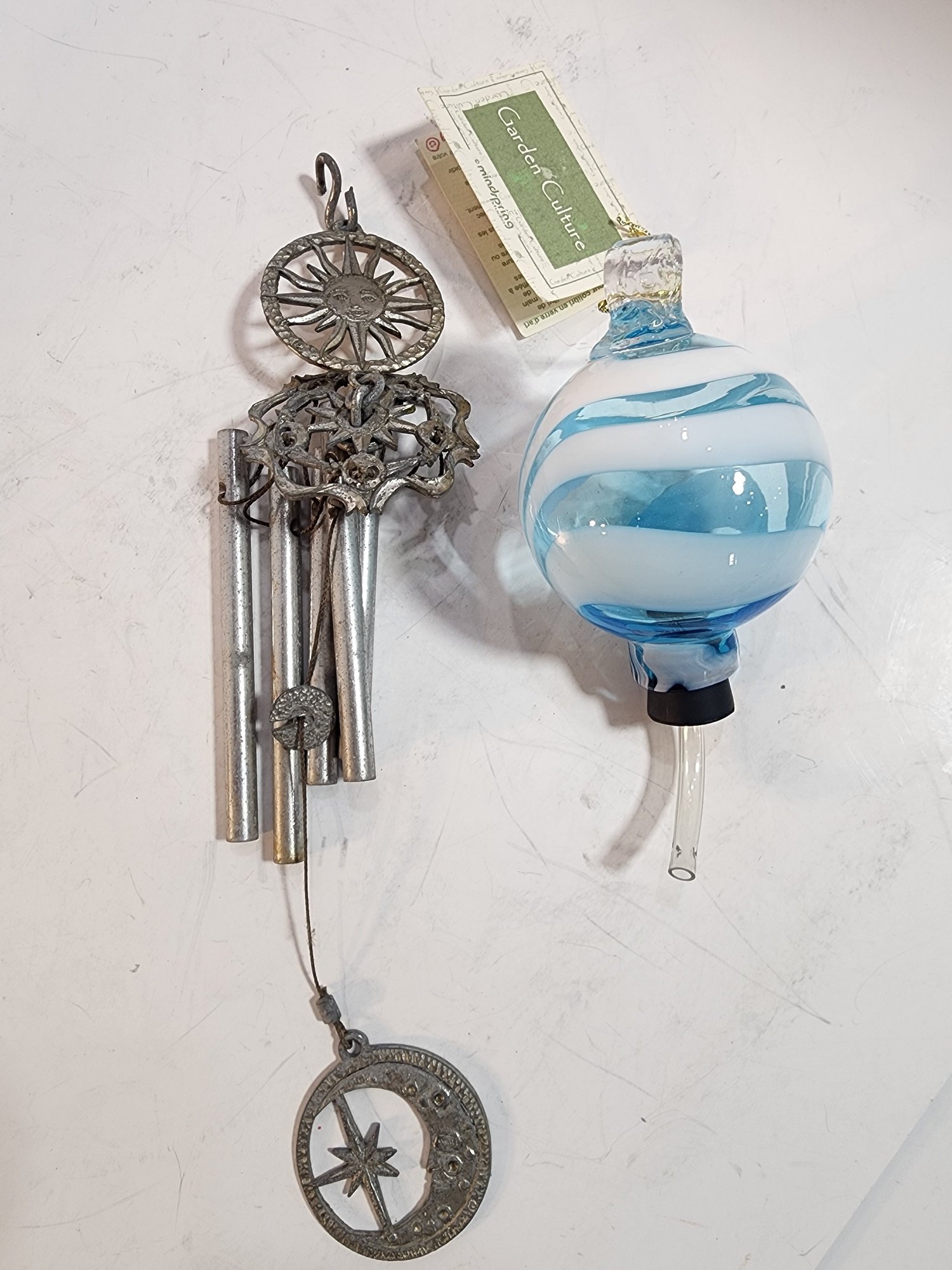 #82 Small Wind Chime And Humming Bird Blown Glass Feeder