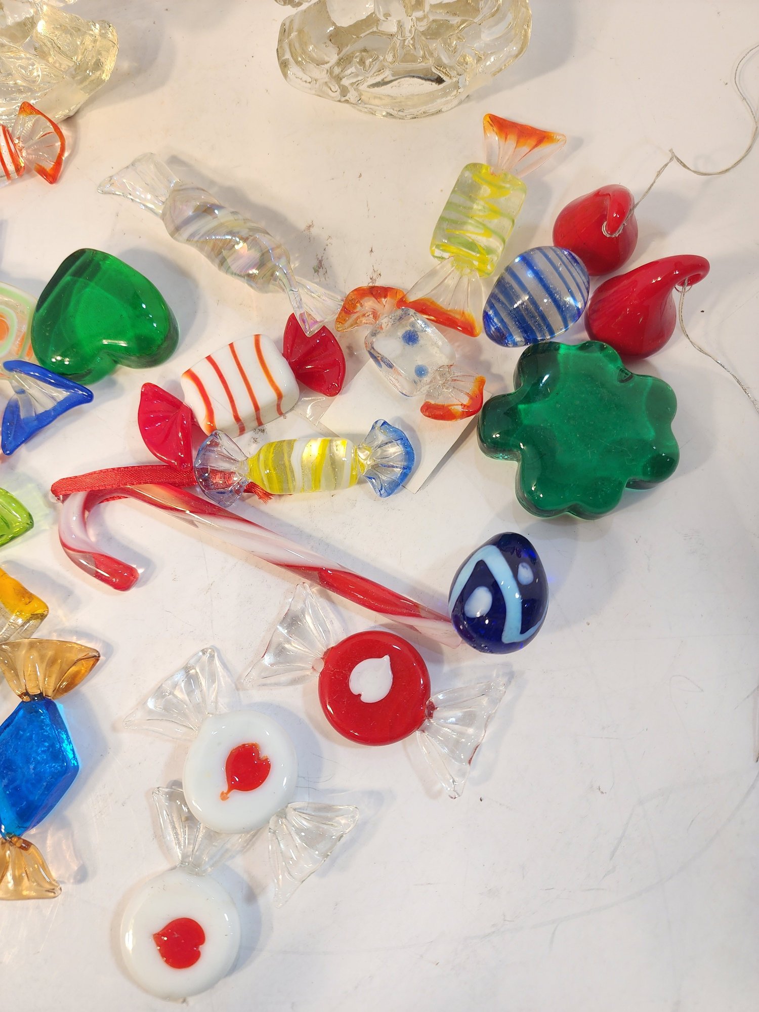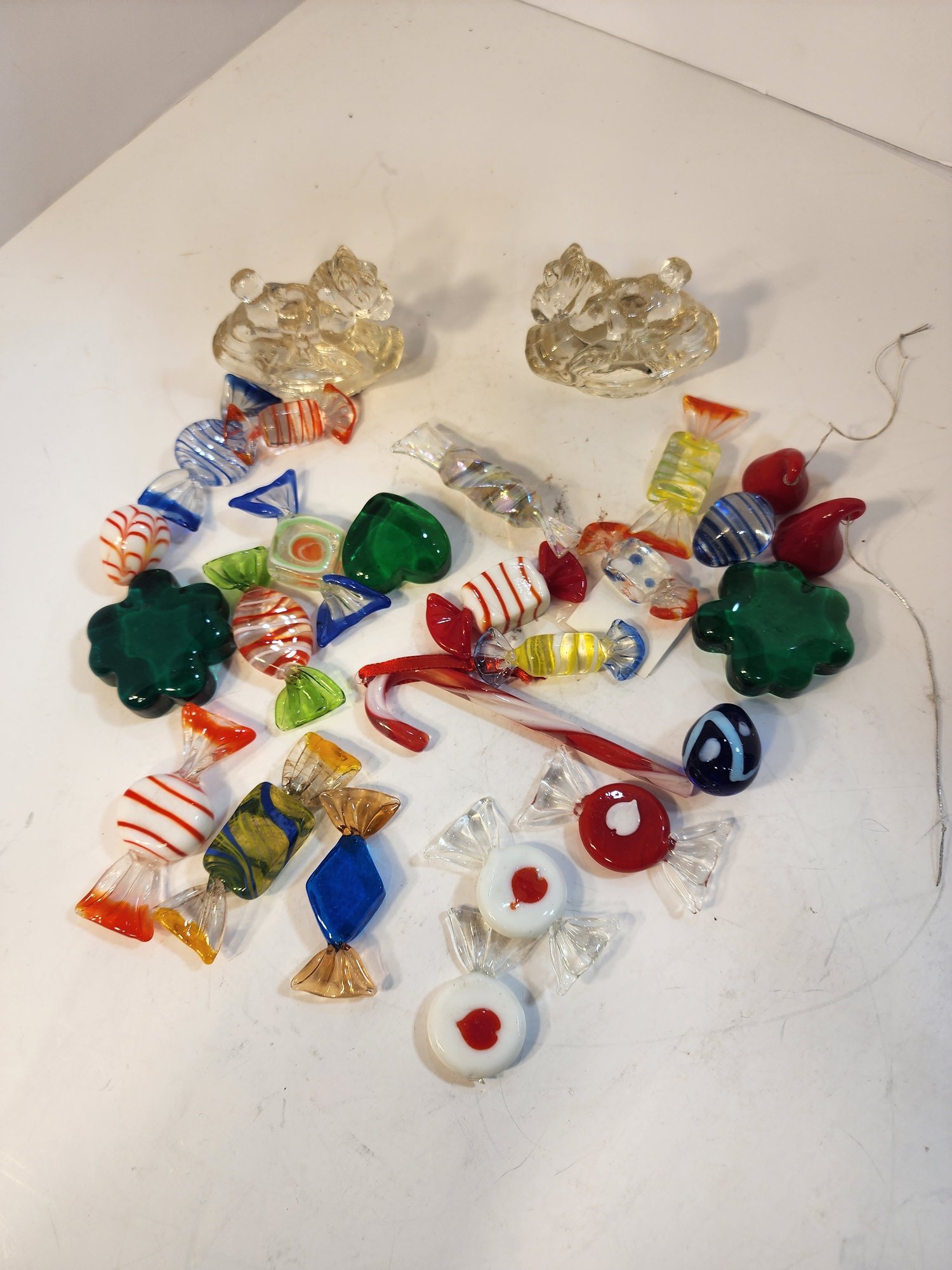 #88 Lot Of Blown Glass Candy And 2 Glass Horses