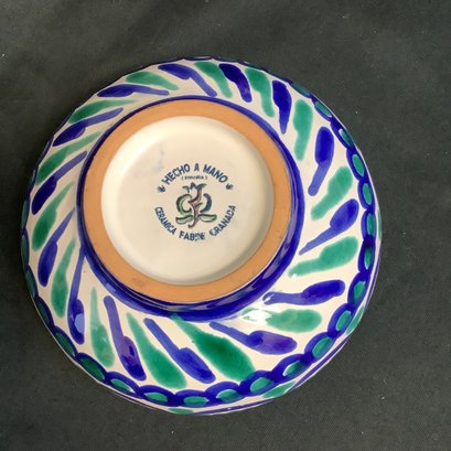 COLBOLT AND GREEN SWIRL DESIGN BOWL MADE IN GRENADA POMEGRANIT DESIGN