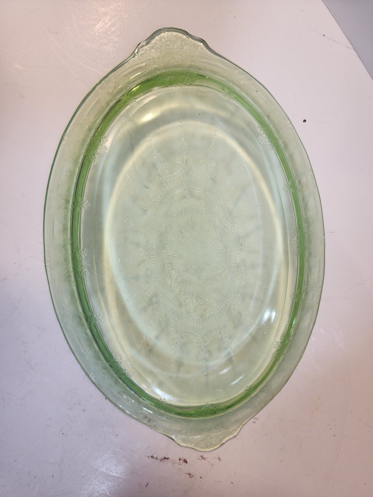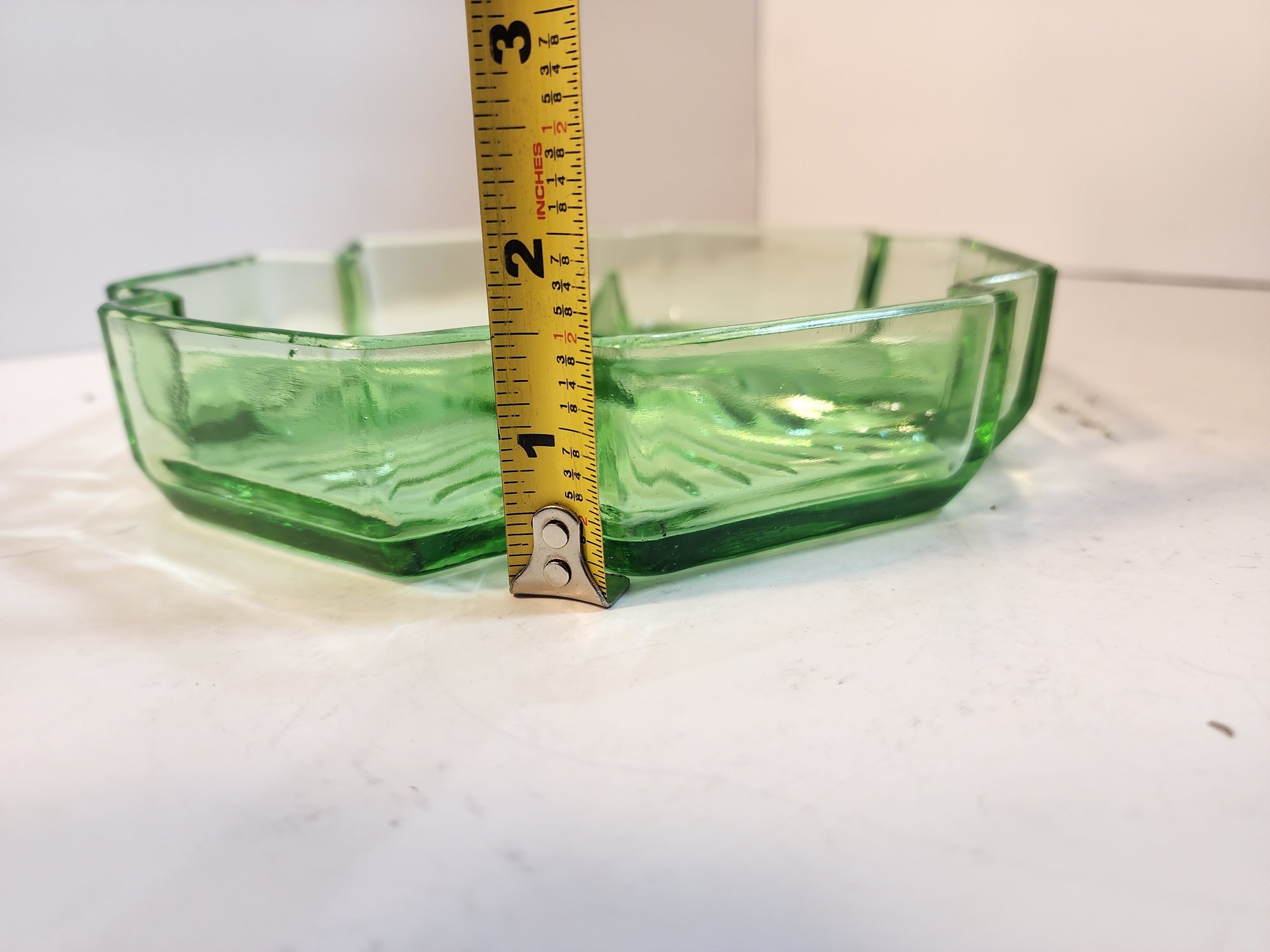 #91 Green Depression Glass Sectioned Dish And Depression Glass Platter