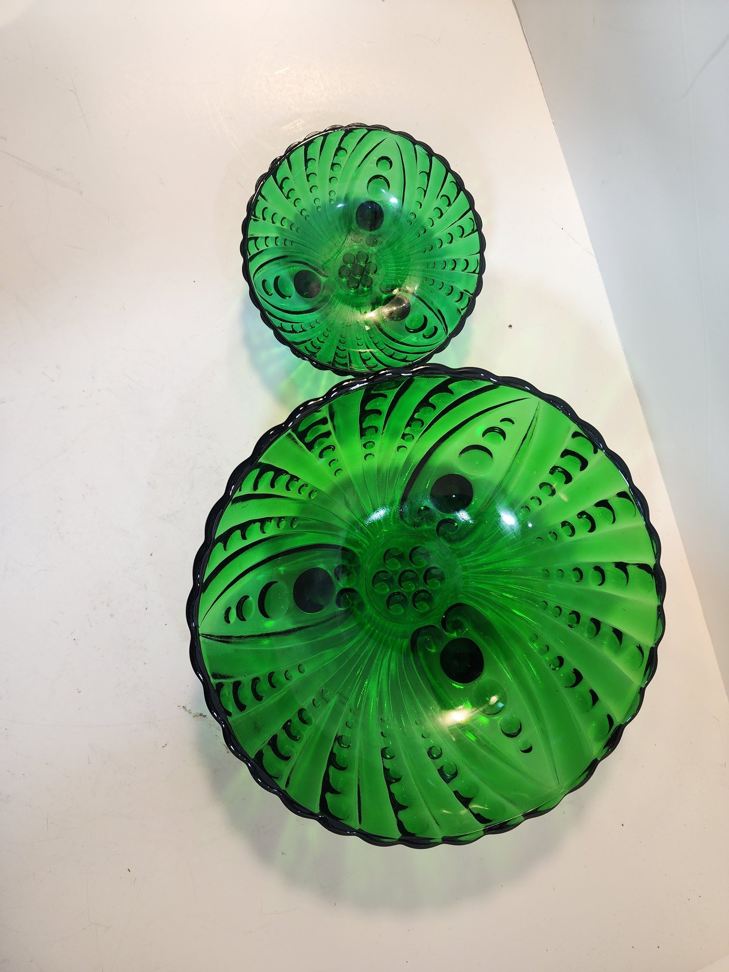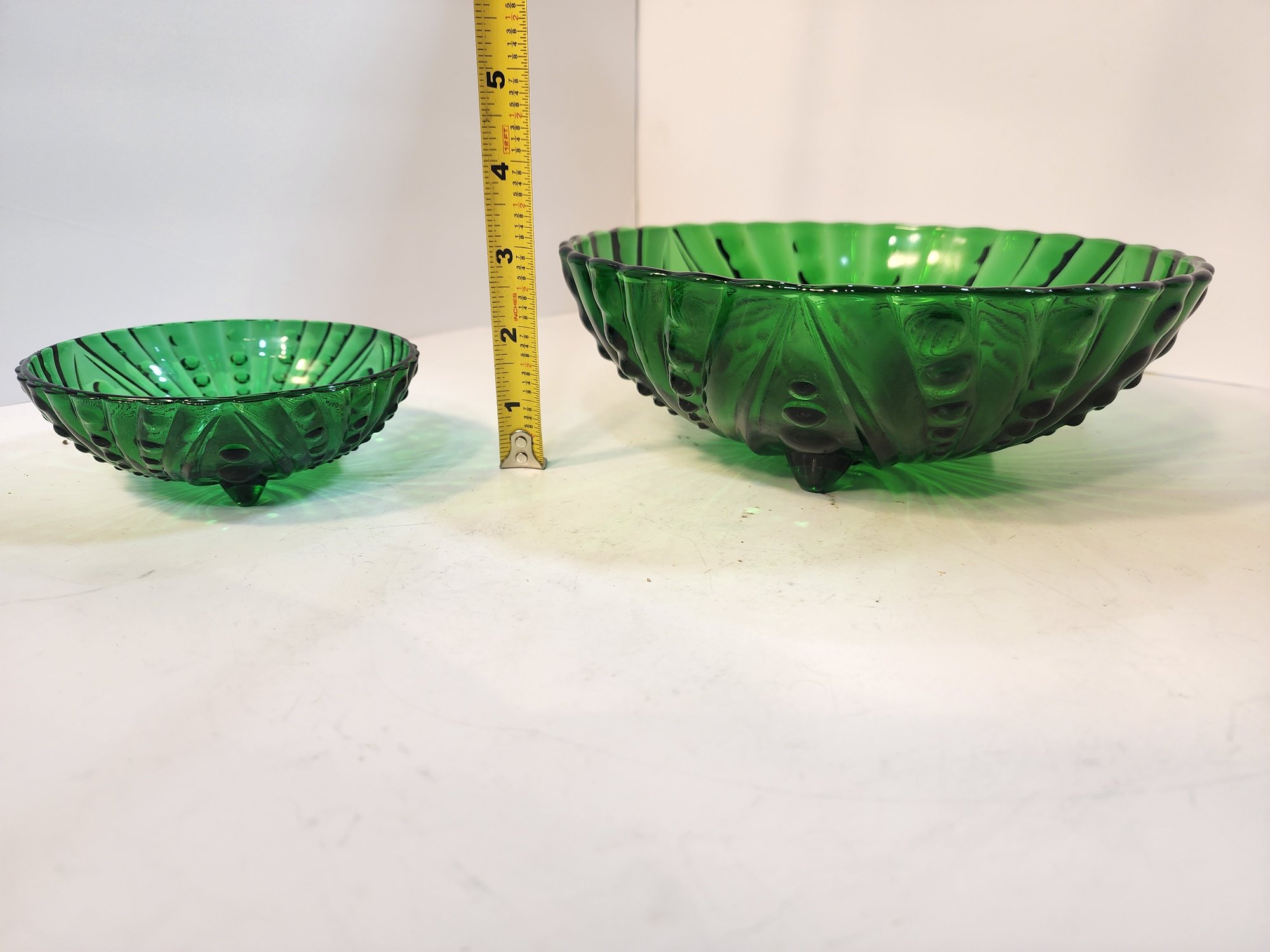 #92 2 Forrest Green Vintage Depression Glass Bowls