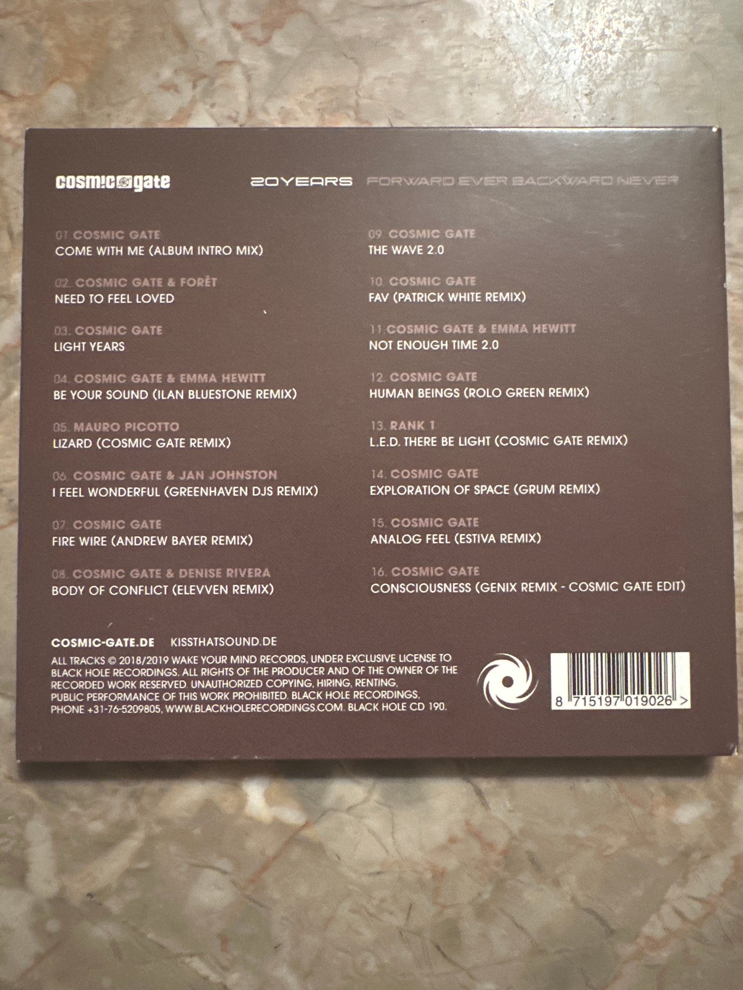 Cosmic Gate 20 Years Forward Ever Backward Never CD