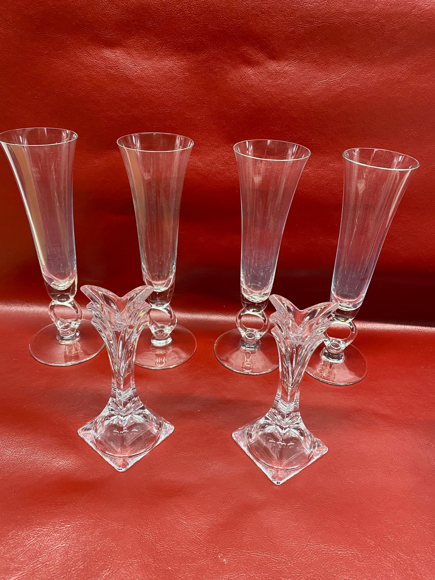 Glasses 8. 5. “ tall. Candle sticks 5.5” tall