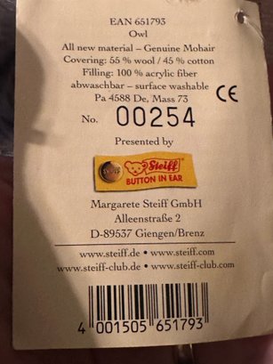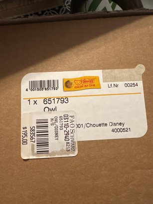 Disneys owl is made of mohair and is 10” tall. Very low limited edition 245/5000. Comes with COA along with inner and outer boxes.