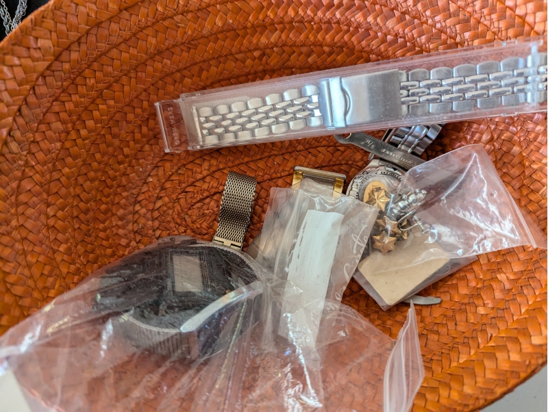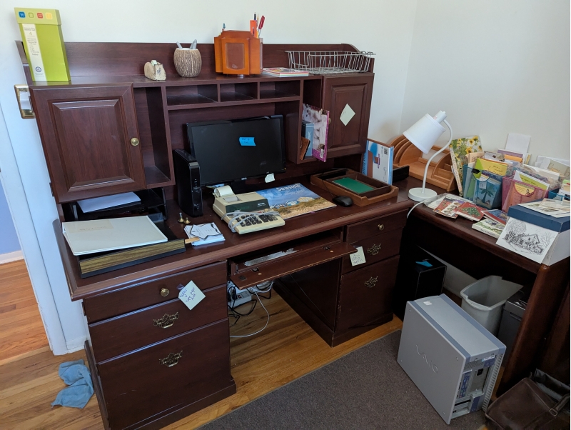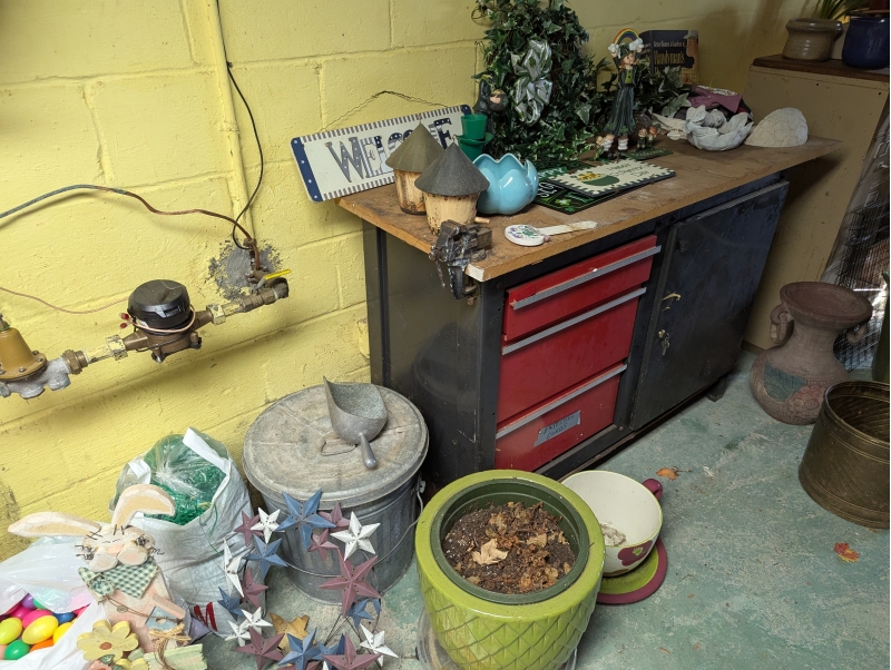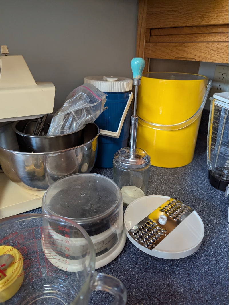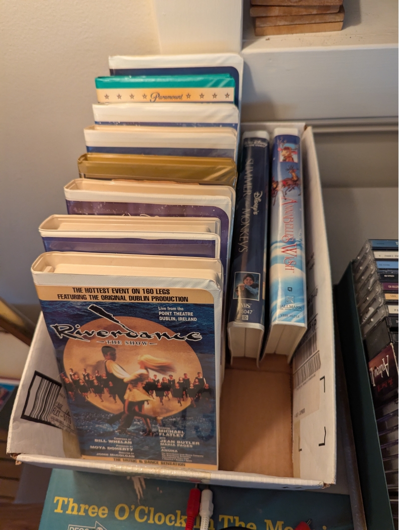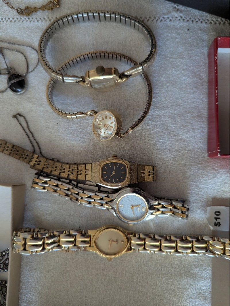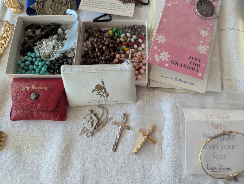 Kitchen items, Fine China, huge red glass collection, serving dishes and bowls, flatware, baskets, bags, Art, CDs, books, VHS, kids games and toys, clocks, and cameras