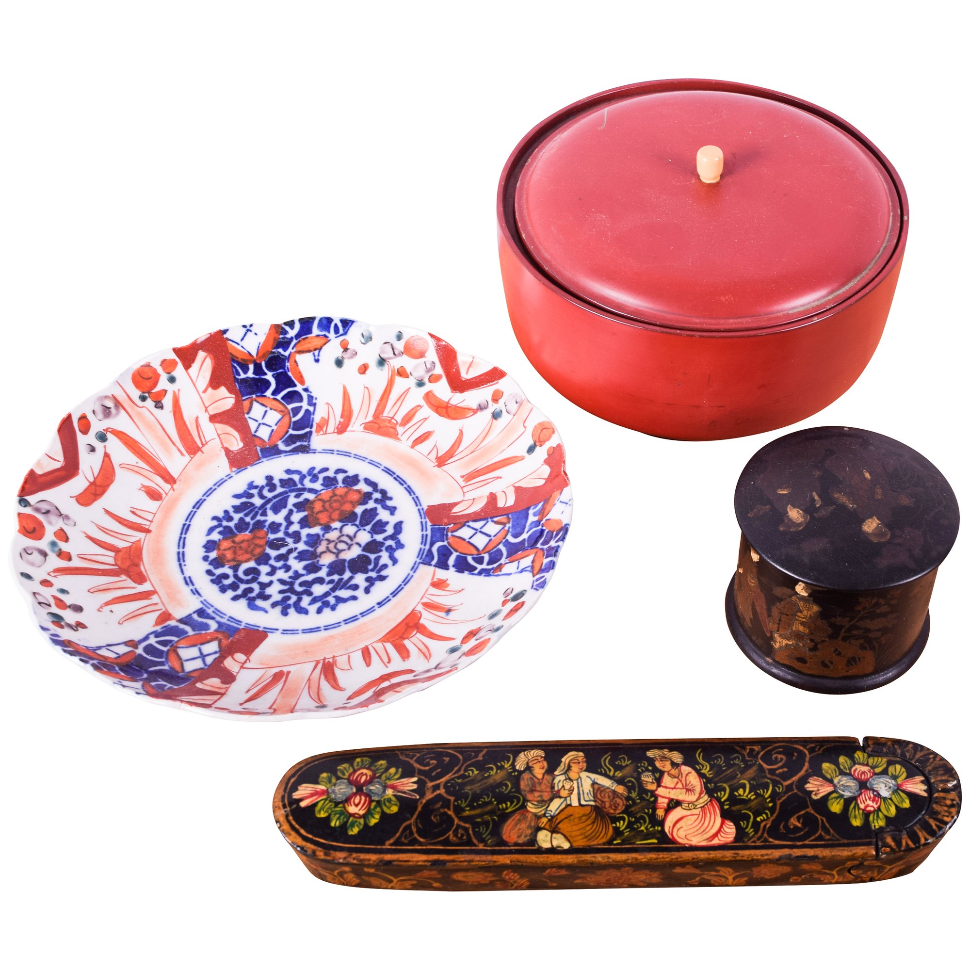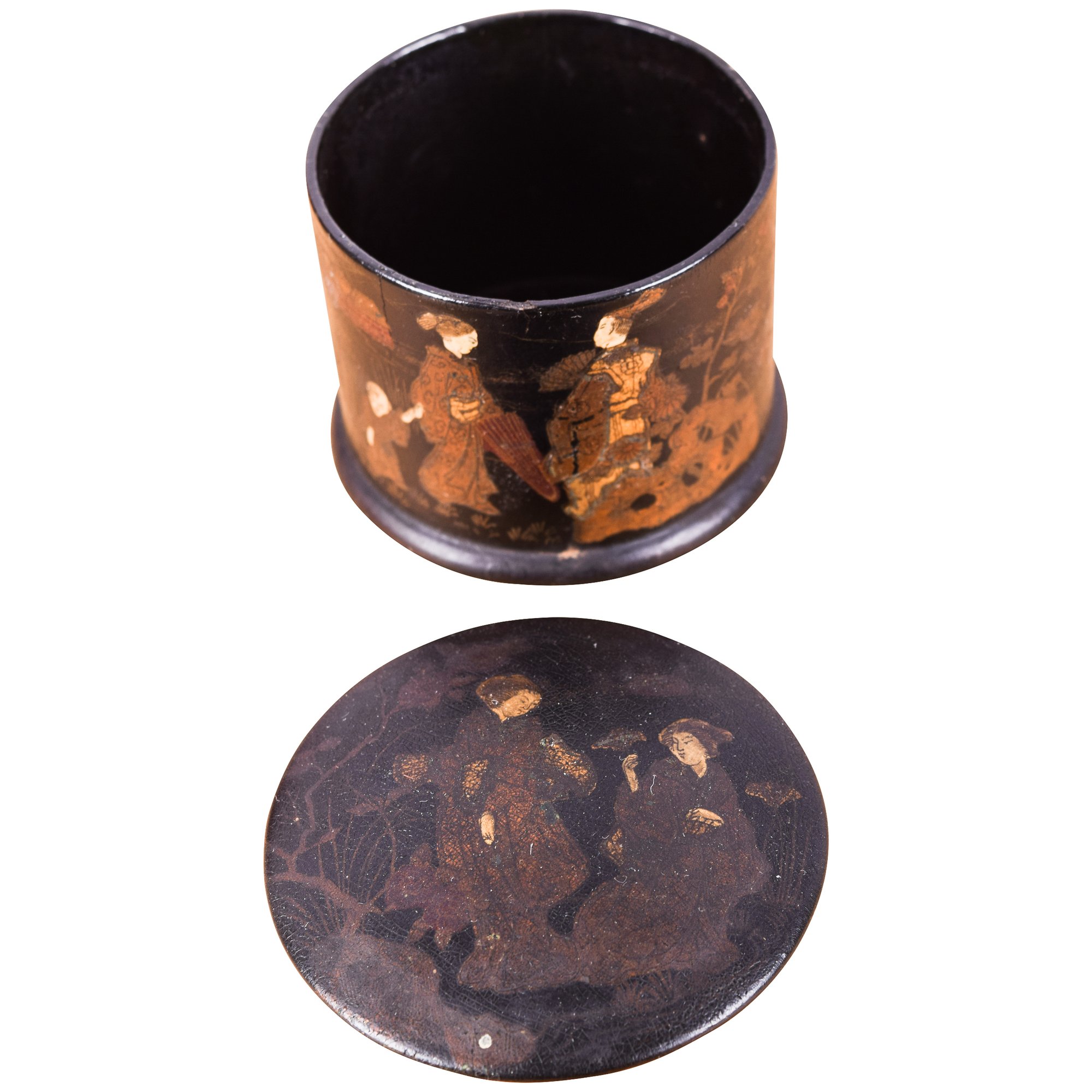 - Japanese papier maché trinket box, 3" x 2.5"