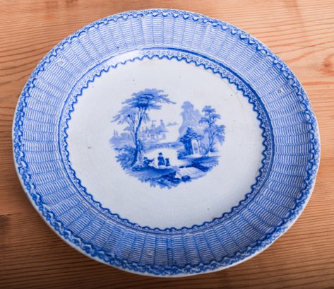 (1) 5.25" Saucer, Leaf motif, Flow blue
