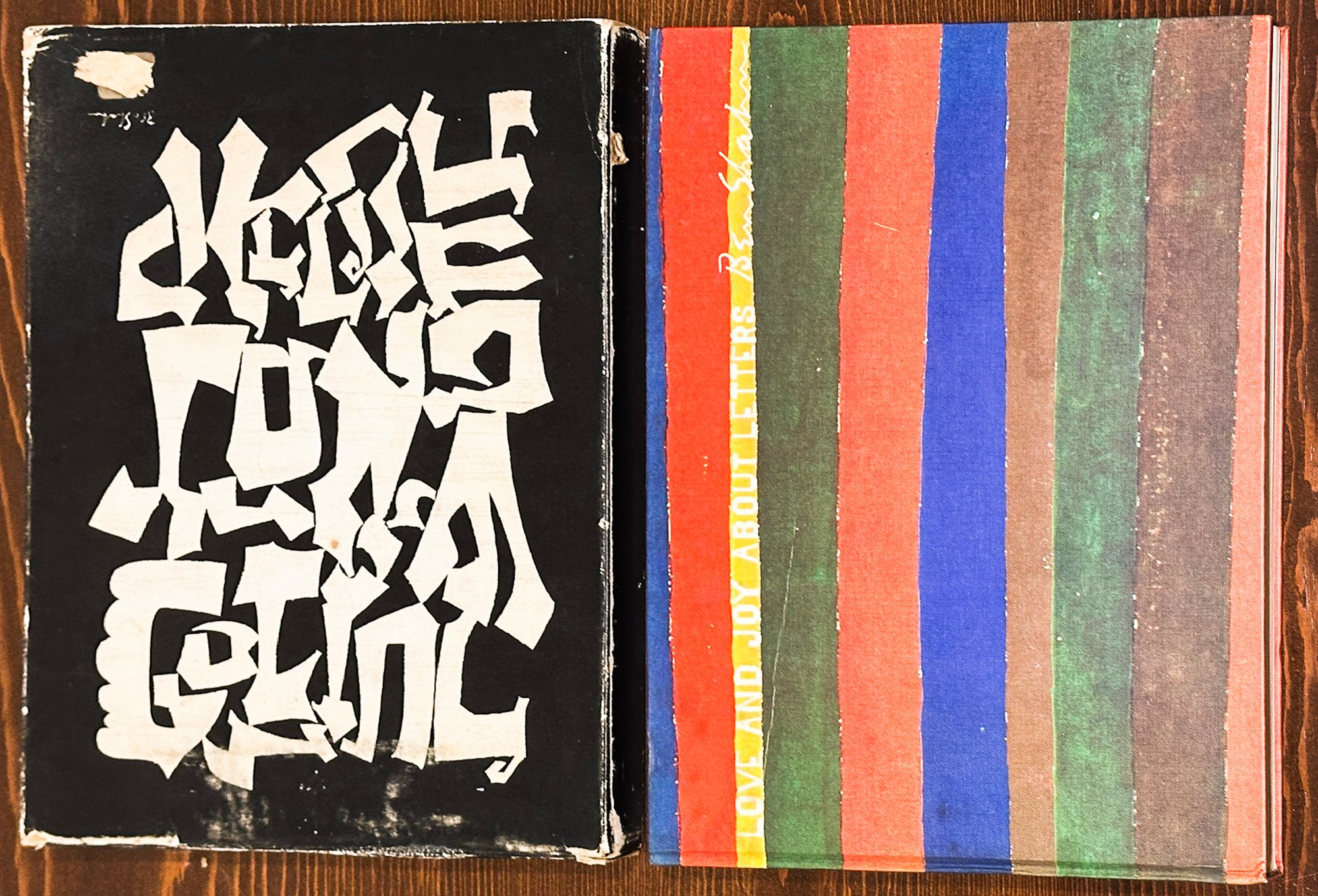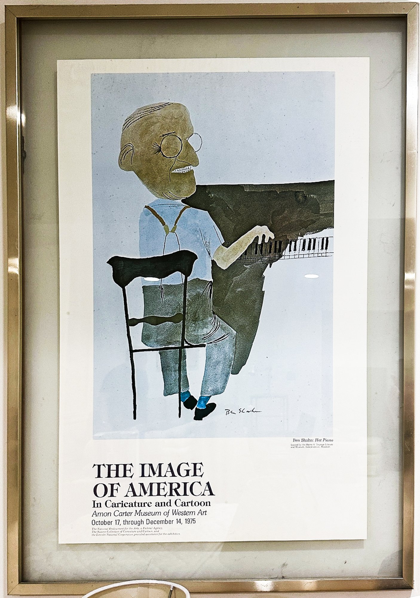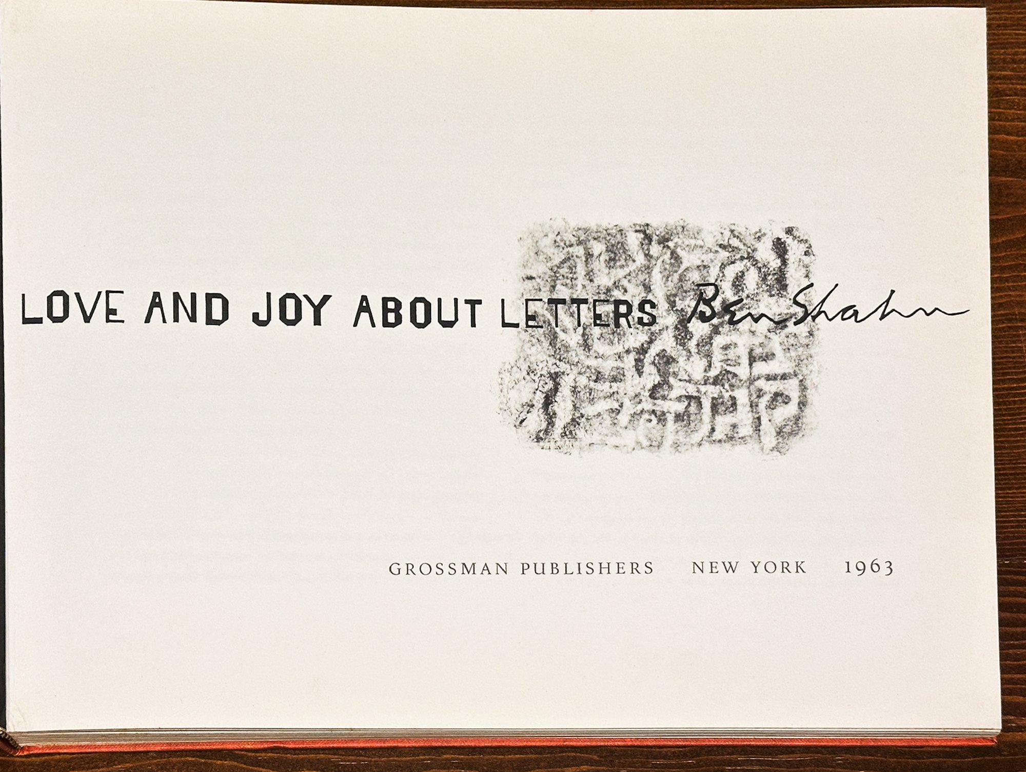 A 1975 Ben Shahn exhibition framed poster, "The Image of America", exceptionally nice in floating glass with 1" aluminum frame, and a 1963 first edition book "Love and Joy About Letters," Ben Shahn's "love letter" to the written word, with Shahn's unmistakable wit and wisdom, drawings, and color photographs.Comes in a slipcase, book may have creases on the cover, spine, and / or pages. Surface wear to cover and interior stains or marks are possible.