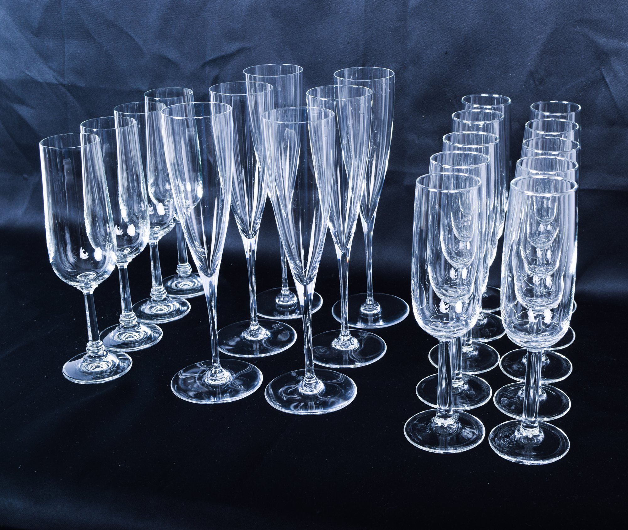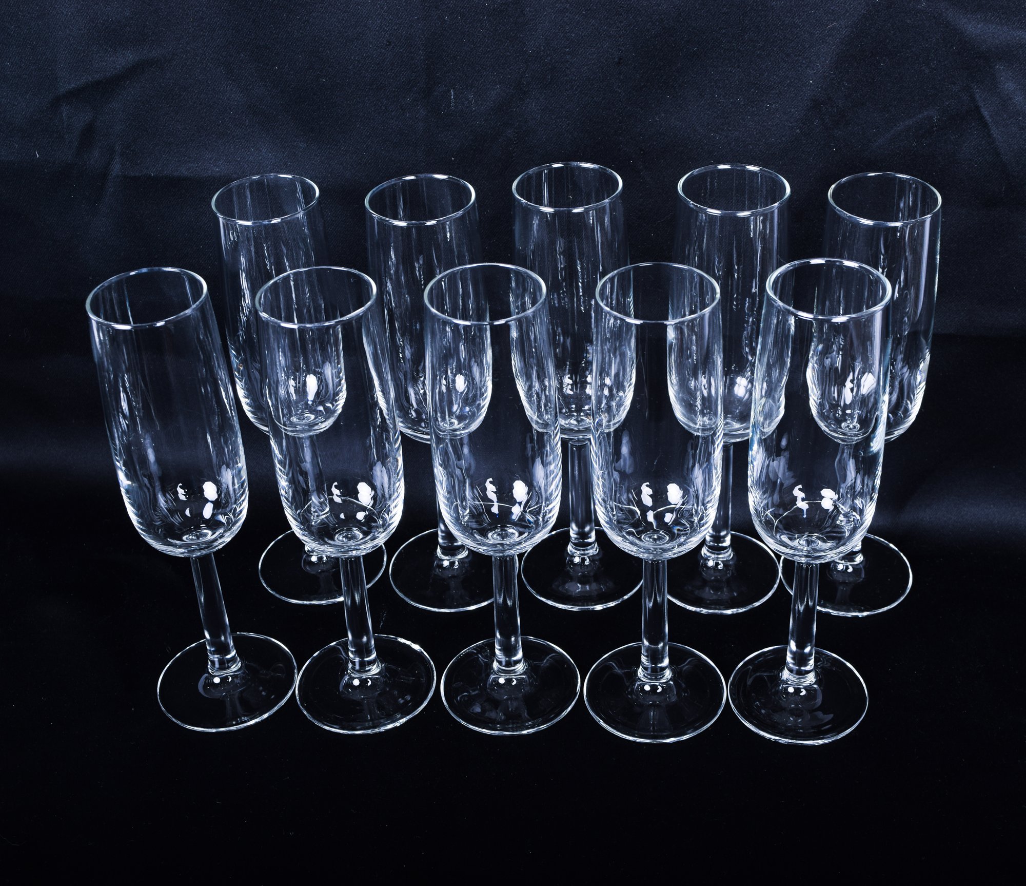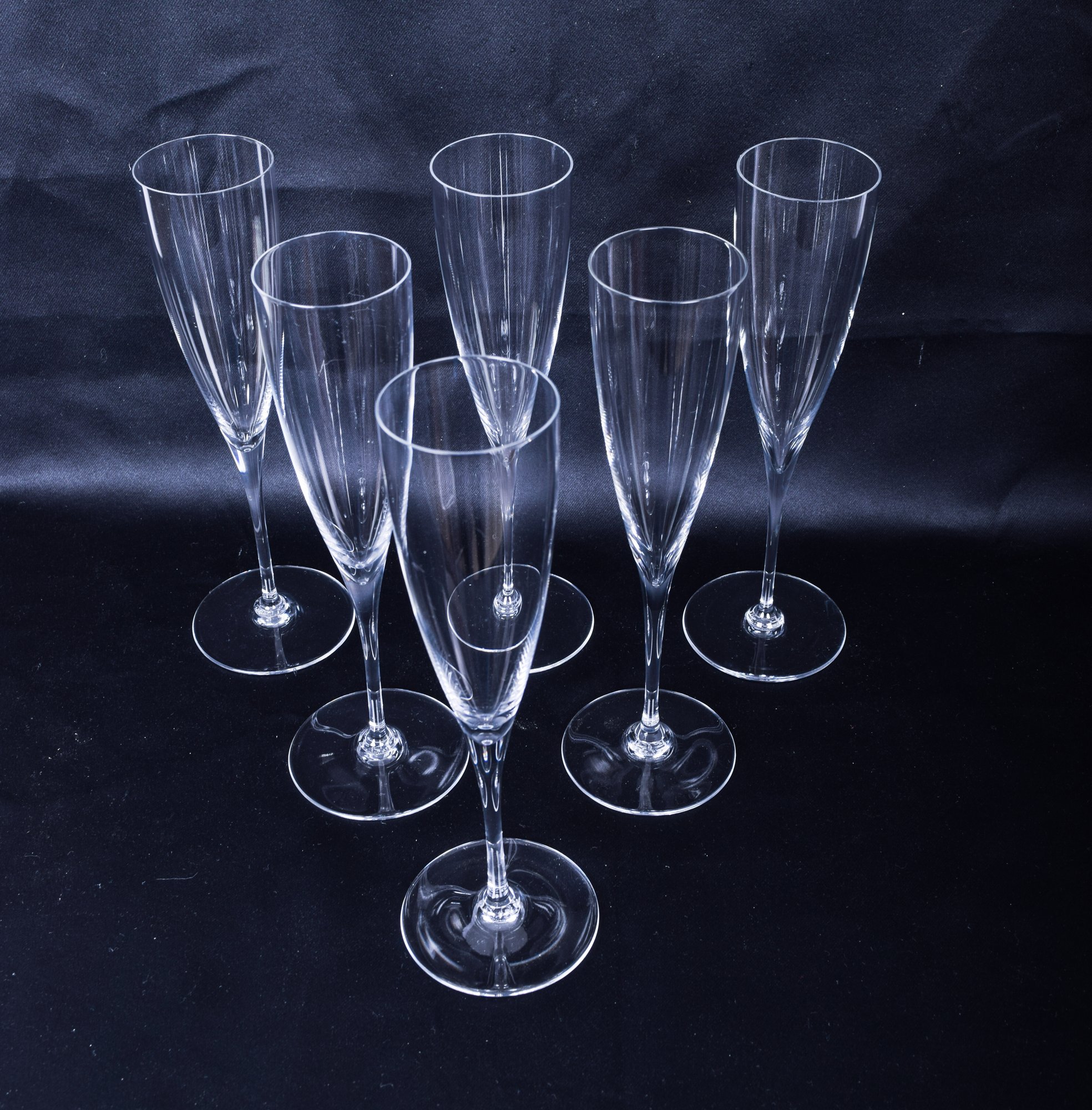 Six signed Baccarat Champagne flutes and forteen glass ones, all in perfect condition. Perfect to toast the new year or a special occasion with your closest friends or family,