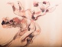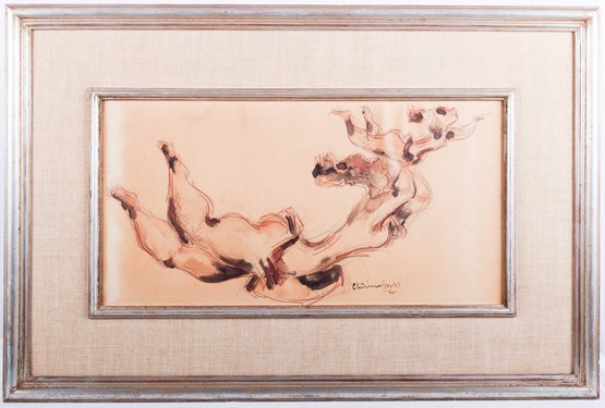 "Happy Baby" Original drawing of Mother and Child Acrobats by Chaim Gross. Hungarian-born Gross was an internationally-reknown sculptor and teacher whose work is in the permanent collections of the Whitney Museum of Art, The Smithsonian Museum, Philadelphia Museum of Art, and the Hirshhorn Museum among many other notable institutions. After migrating to NY, he worked with the WPA, leading to commissions from The 1939 Worlds Fair and 1932 Summer Olympics. Gross' lithographs of women in interiors, the circus, and vaudeville were legendary—we are proud to offer this original sketch of an acrobatic Mother and Child, in mid flight ...held aloft by nothing but their trust in one another.