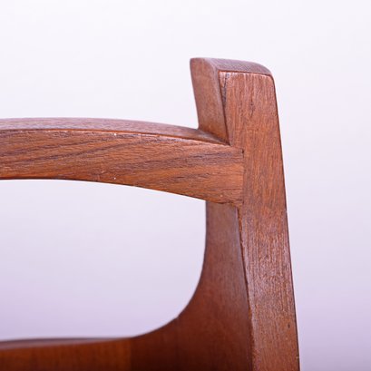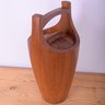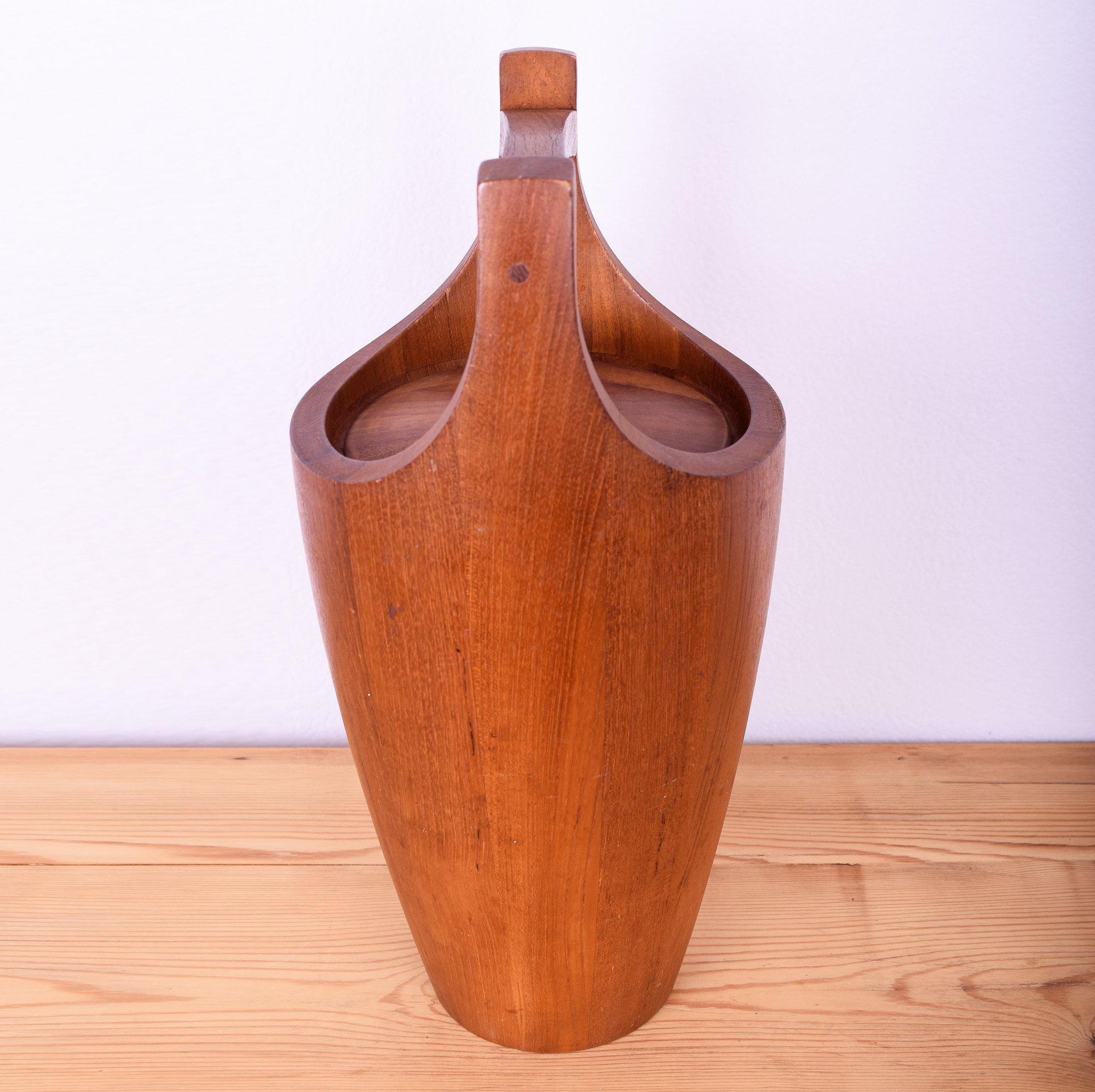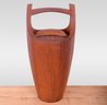 Iconic Mid-Century Modern teak ice bucket with stirrup handle by Jens H. Quistgaard, the designer for the American company, Dansk, undisputed leader in Scandi-American tableware design. Quistgaard brought a modern sculptural approach to teak tableware, creating lasting designs that are highly sought-after today. This conical ice bucket is made of a solid teak staves, a barrel technique. This large and highly recognized icon of Mid-Century modern design has been well cared for, and will solidly stand up to the test of time.