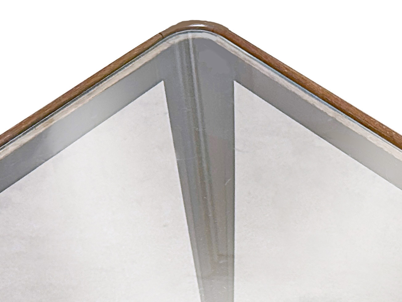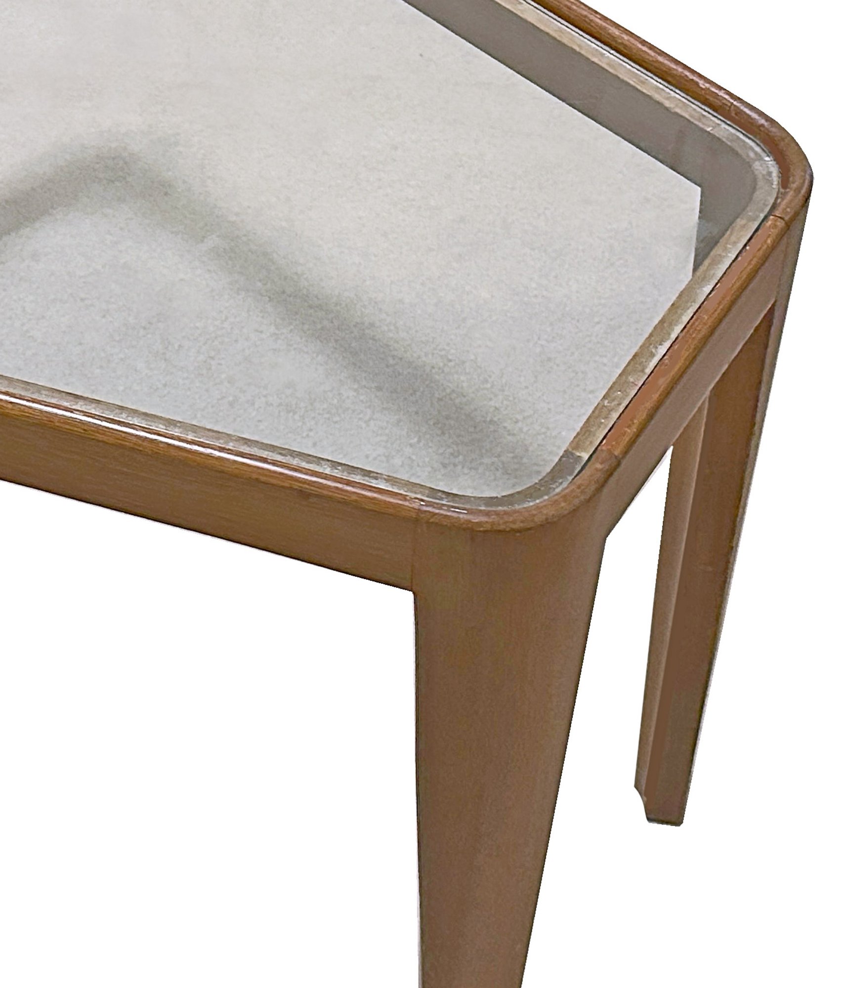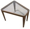 This is a rare Edward Wormley design, #4809, for Dunbar furniture, c. 1948. A wedge-shaped trapezoidal occasional table with with rounded corners and a glass insert top, supported by outwardly rounded, concave legs. This uncommon and highly-coveted occasional table is a rare gem of Mid-Century design. Light and airy, with gently tapered, curved wood legs, this table represents Wormley at his best. Dunbar's #4809 Trapezoid Table in walnut with tempered glass insert is epitome of excellence—the perfect blend of elegance of form and function.