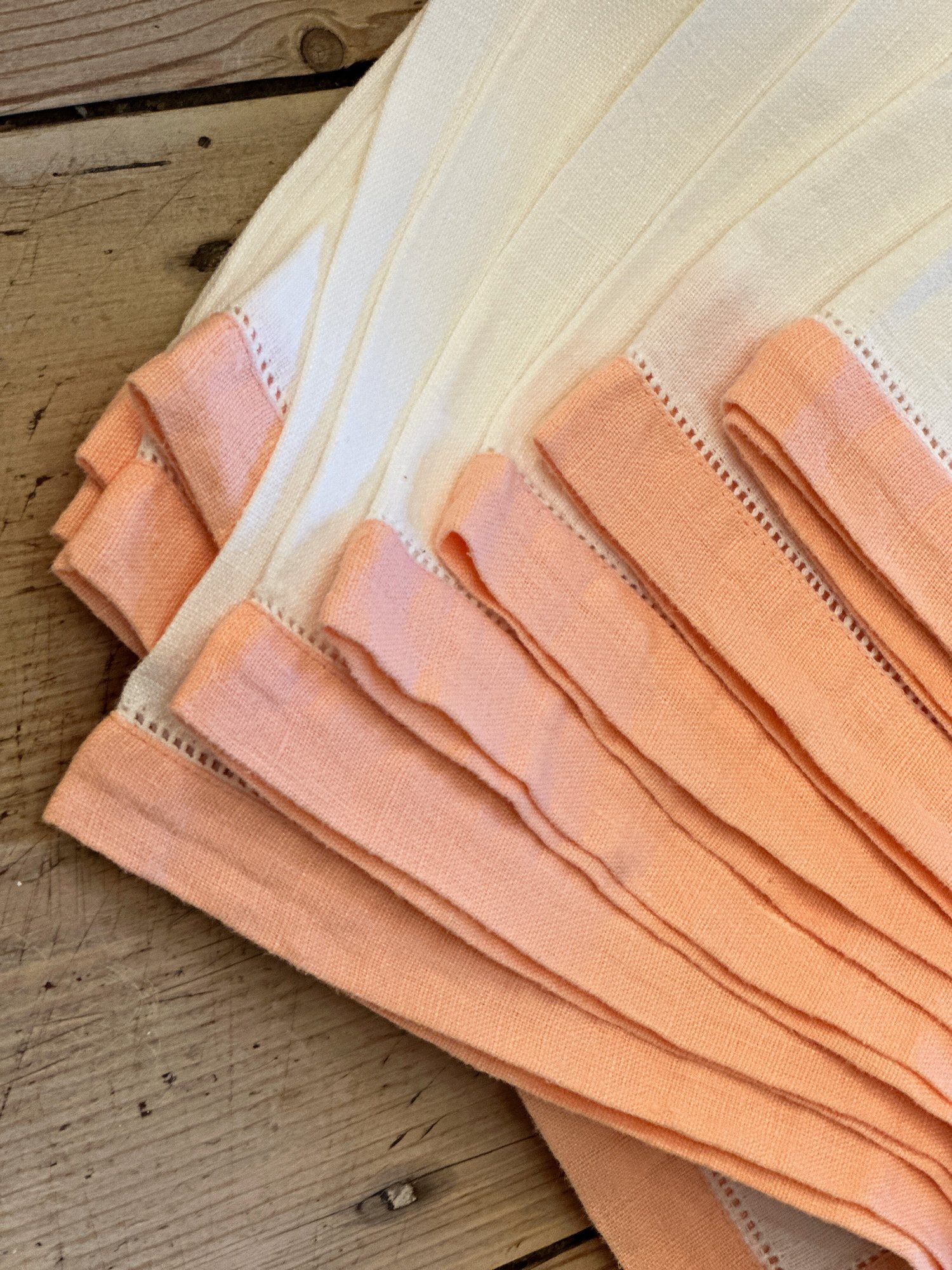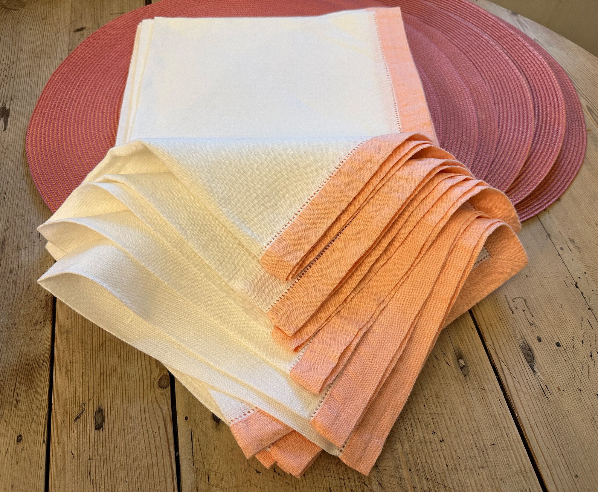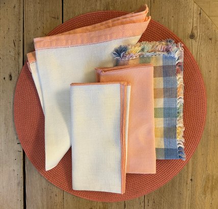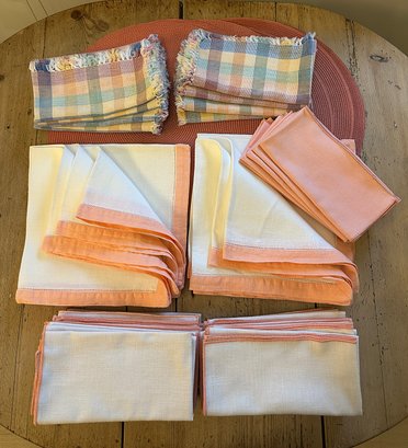 Set of table peach colored linens, starched and in like new condition, includes: