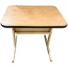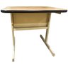A small computer desk or copier table. This sturdy steel frame with oak plastic laminate top is surprisingly heavy, and will accommodate anything from a laser printer to a drill press. Legs are out of the way, on the perimeter. A perfect, super-strong little work table that can take all the abuse you can give it!