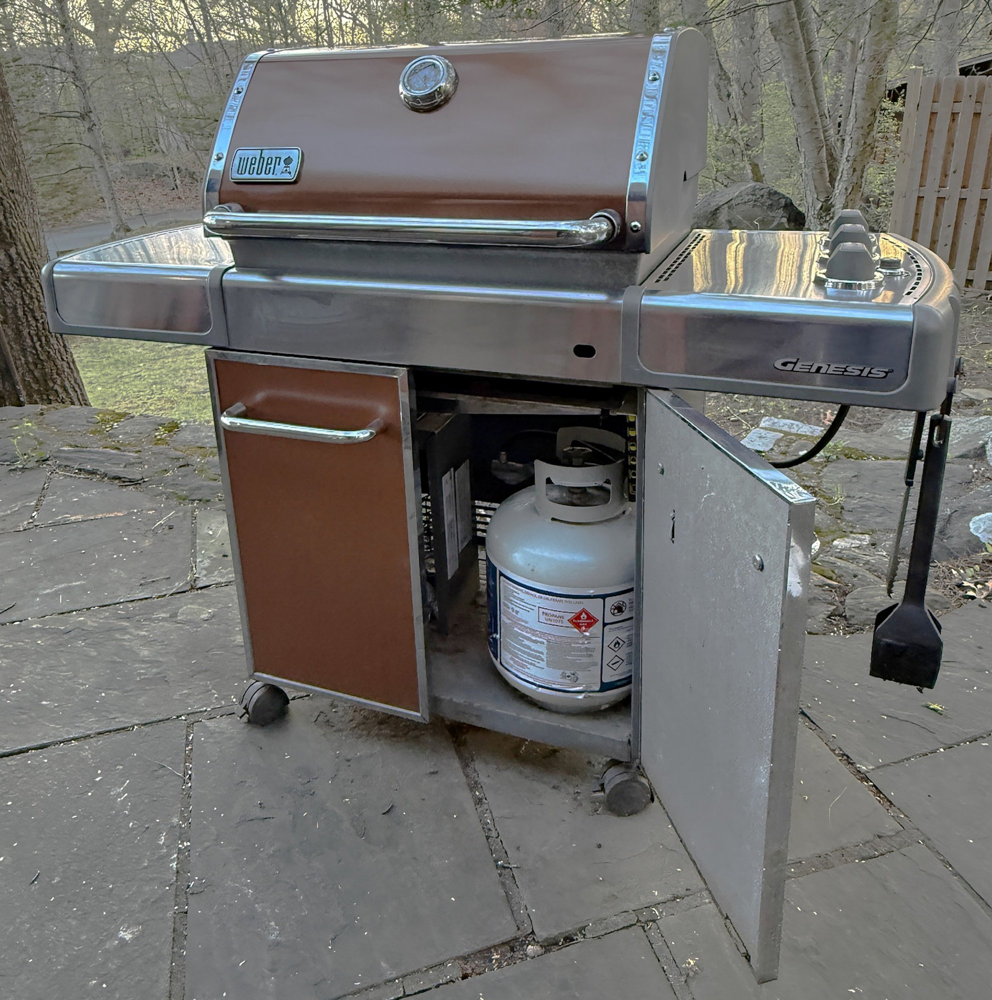 Weber Genesis Special Edition outdoor gas grill in a copper finish with stainless steel grates and new flavorizer bars.