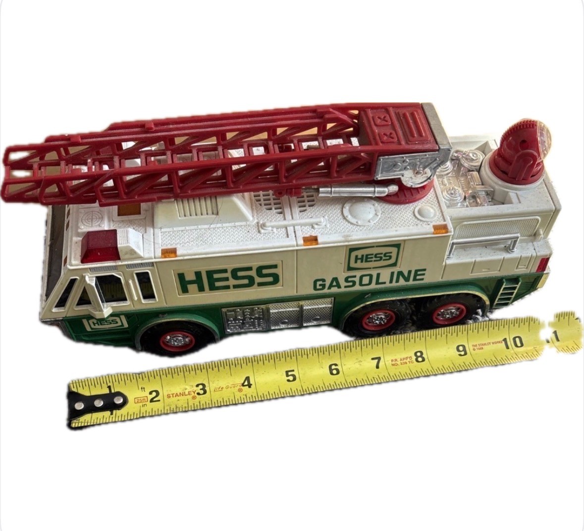 The 1996 Hess Truck with ladder sirens lights is a collectible advertising item featuring the iconic green color associated with the Hess brand. This limited edition piece originates from China and is a must-have for fans of gas and oil memorabilia. With its detailed design and historical significance, this vintage truck is a valuable addition to any collection of Hess merchandise.