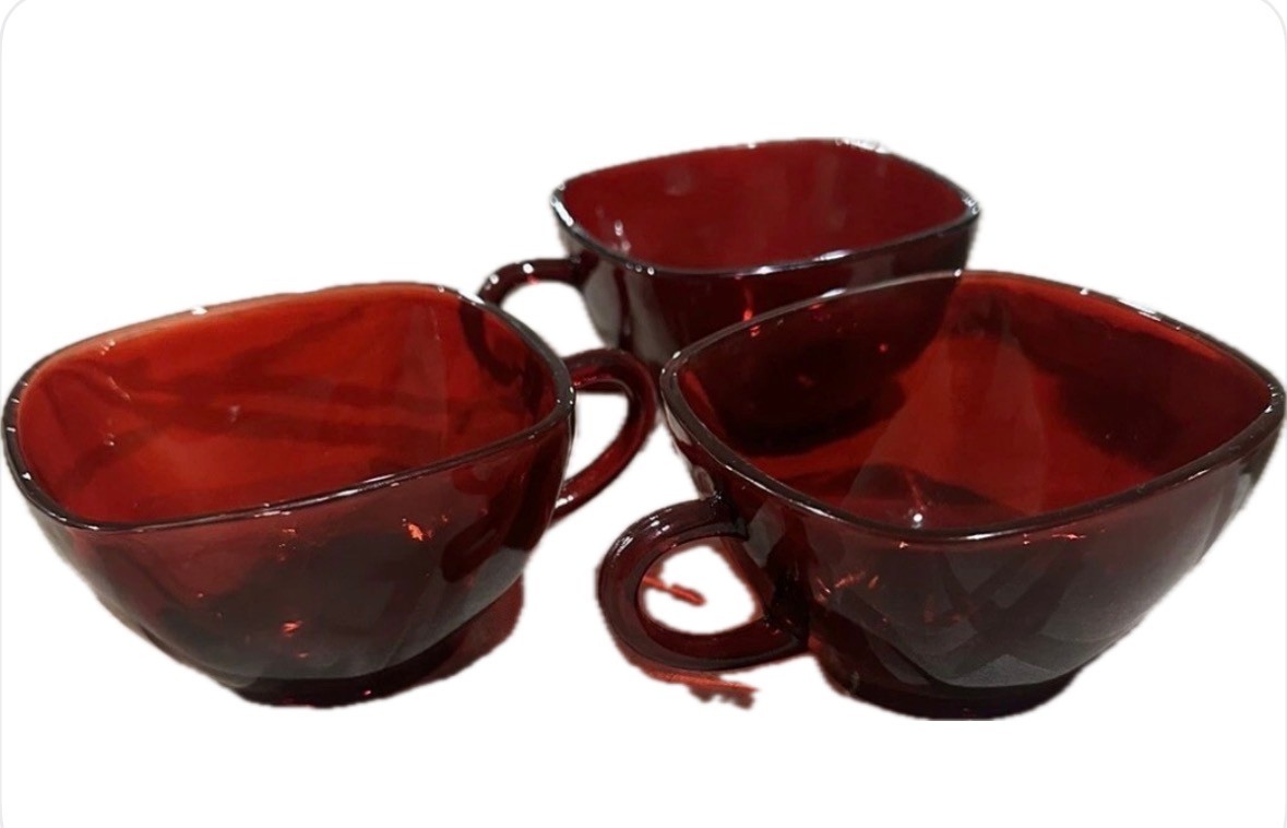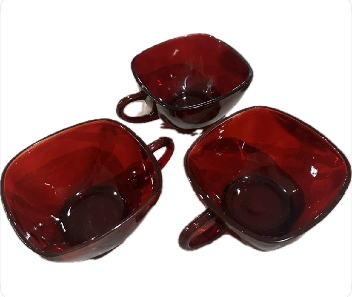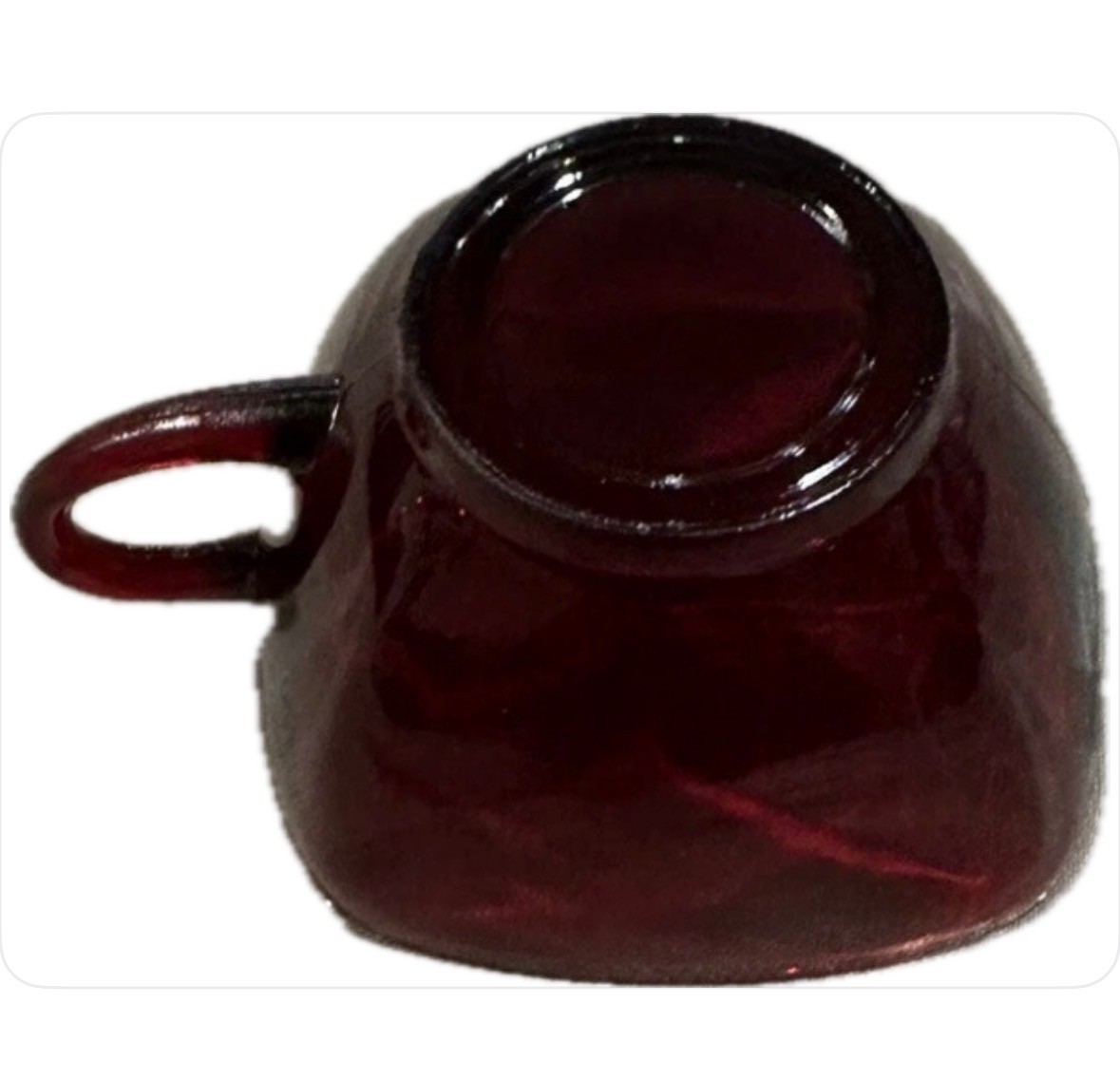 Add a touch of vintage elegance to your tea time with these beautiful Cambridge Glass Royal Ruby Red Square Teacups. Made of high-quality glass, these cups have a unique square shape and a stunning ruby red color that is sure to impress your guests. The cups are from the 1930s and boast a production style that is both classic and timeless. Perfect for tea parties or as a gift for collectors, these cups are a must-have for anyone who appreciates fine craftsmanship and vintage charm. Whether you are an avid collector or just looking for a unique addition to your tea set, these Cambridge Glass Royal Ruby Red Square Teacups are sure to delight.