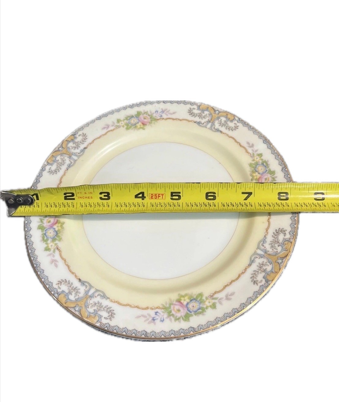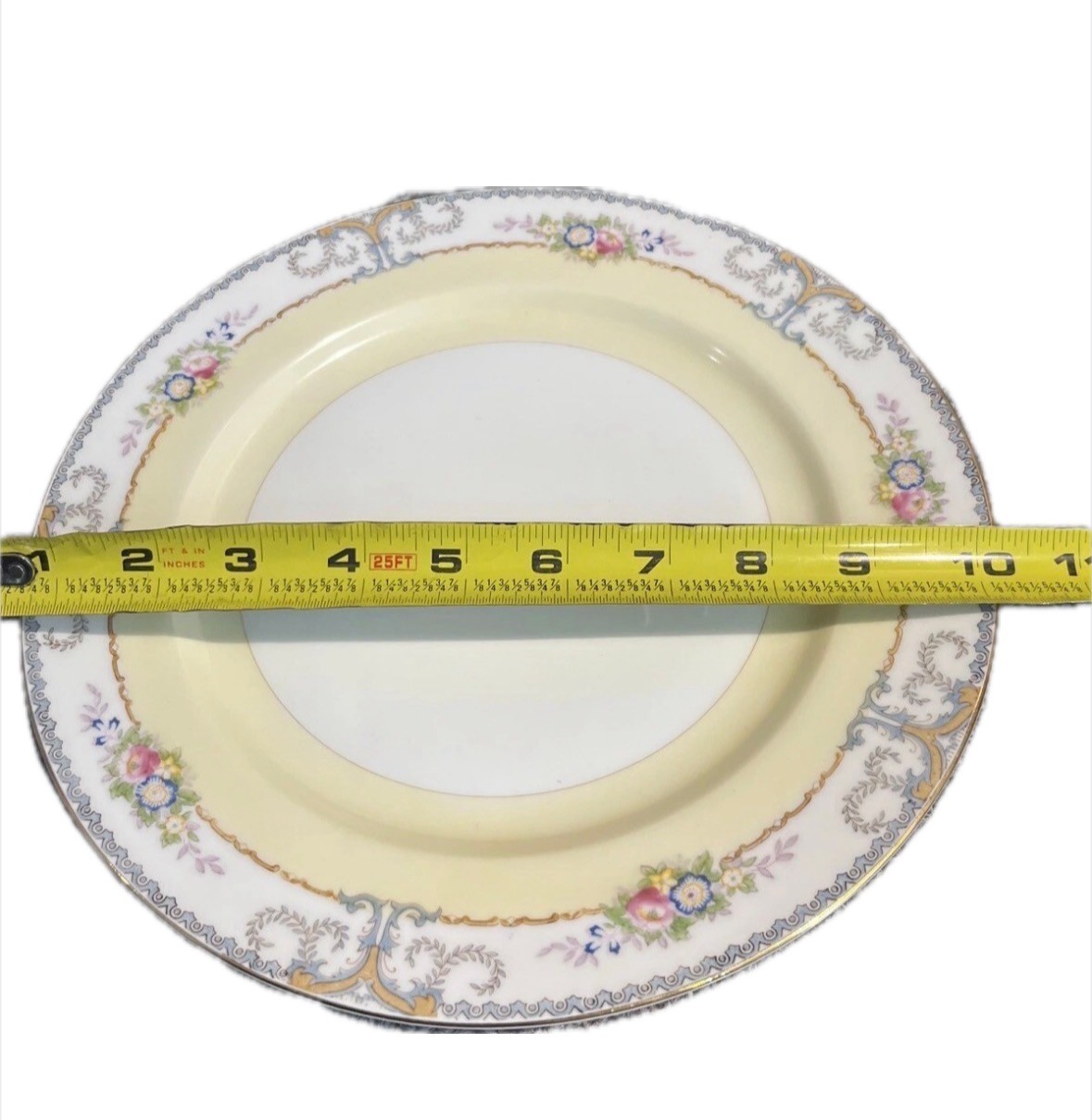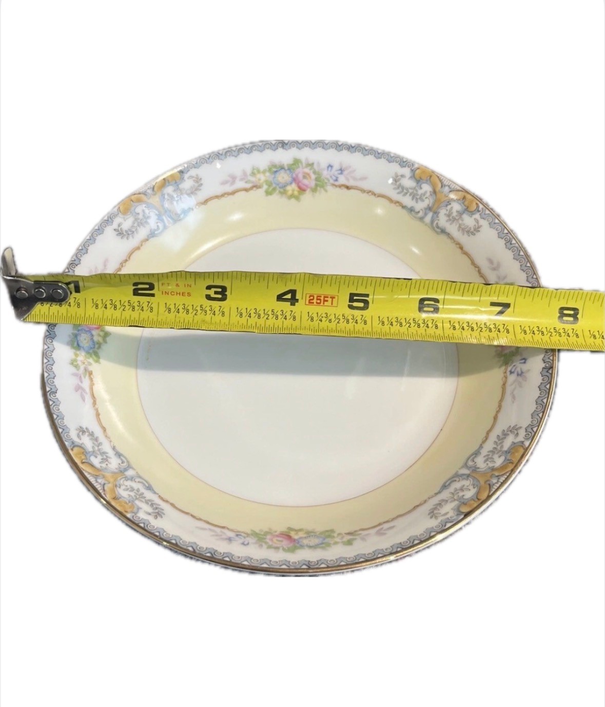 This is a vintage Meito China dinnerware set from Japan, manufactured in 1960. The complete set of six includes seven pieces featuring a floral pattern on multicolor porcelain. The pieces are round in shape and have a Victorian style. Each piece has a printed backstamp and a glossy finish. It consists of 6 dinner plates, 6 salad, 6 soup, 6 bread, 6 dessert plates, 6 tea cup with 6 saucer, perfect for all occasions.