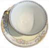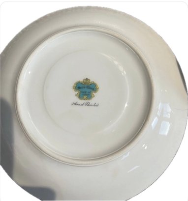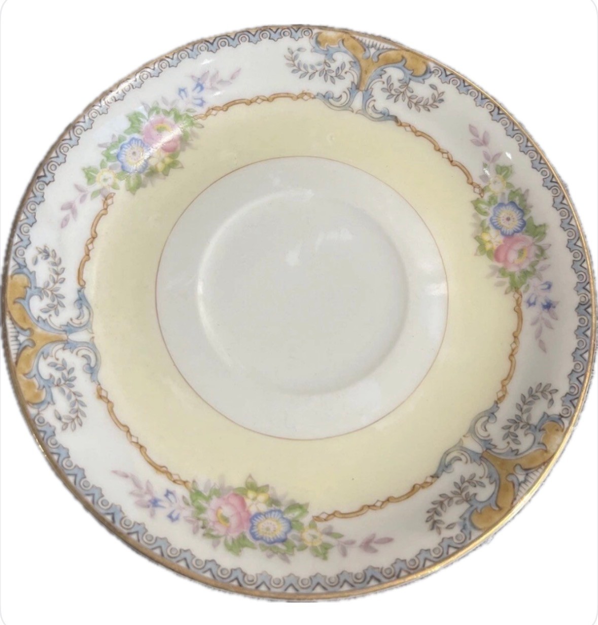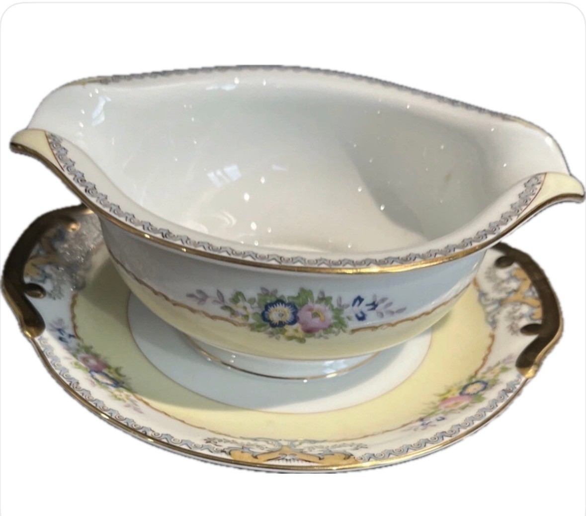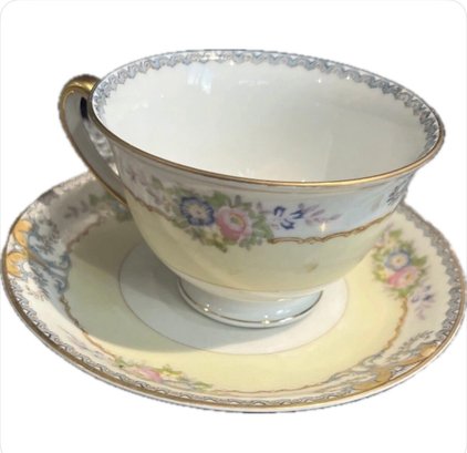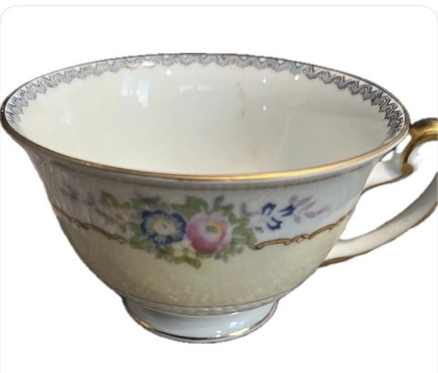 This is a vintage Meito China tea set from Japan, featuring a floral pattern on bone china. The set includes 24 pieces, including tea cups, saucers, a creamer, and a sugar bowl. The backstamp is printed on the items.