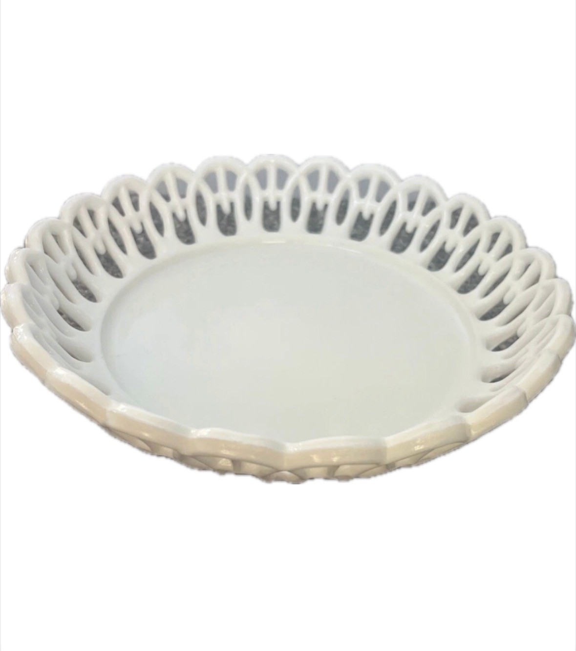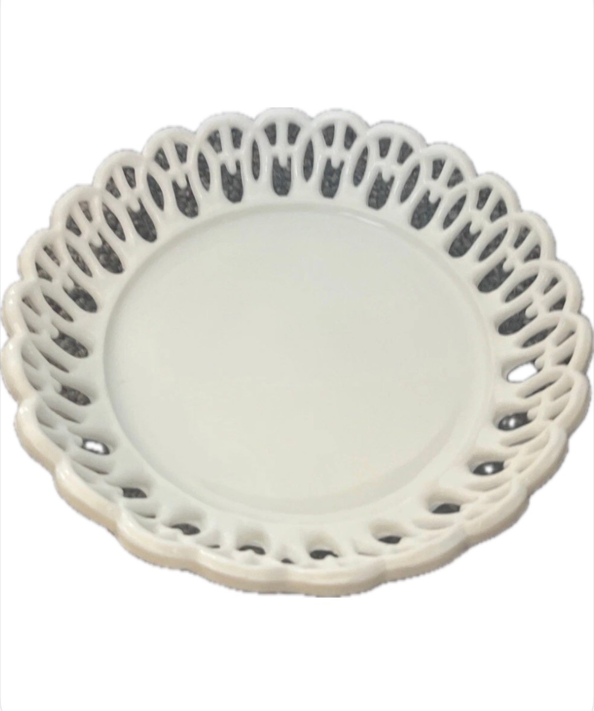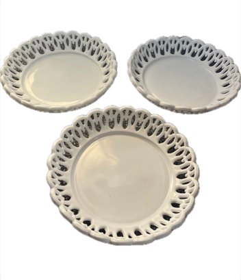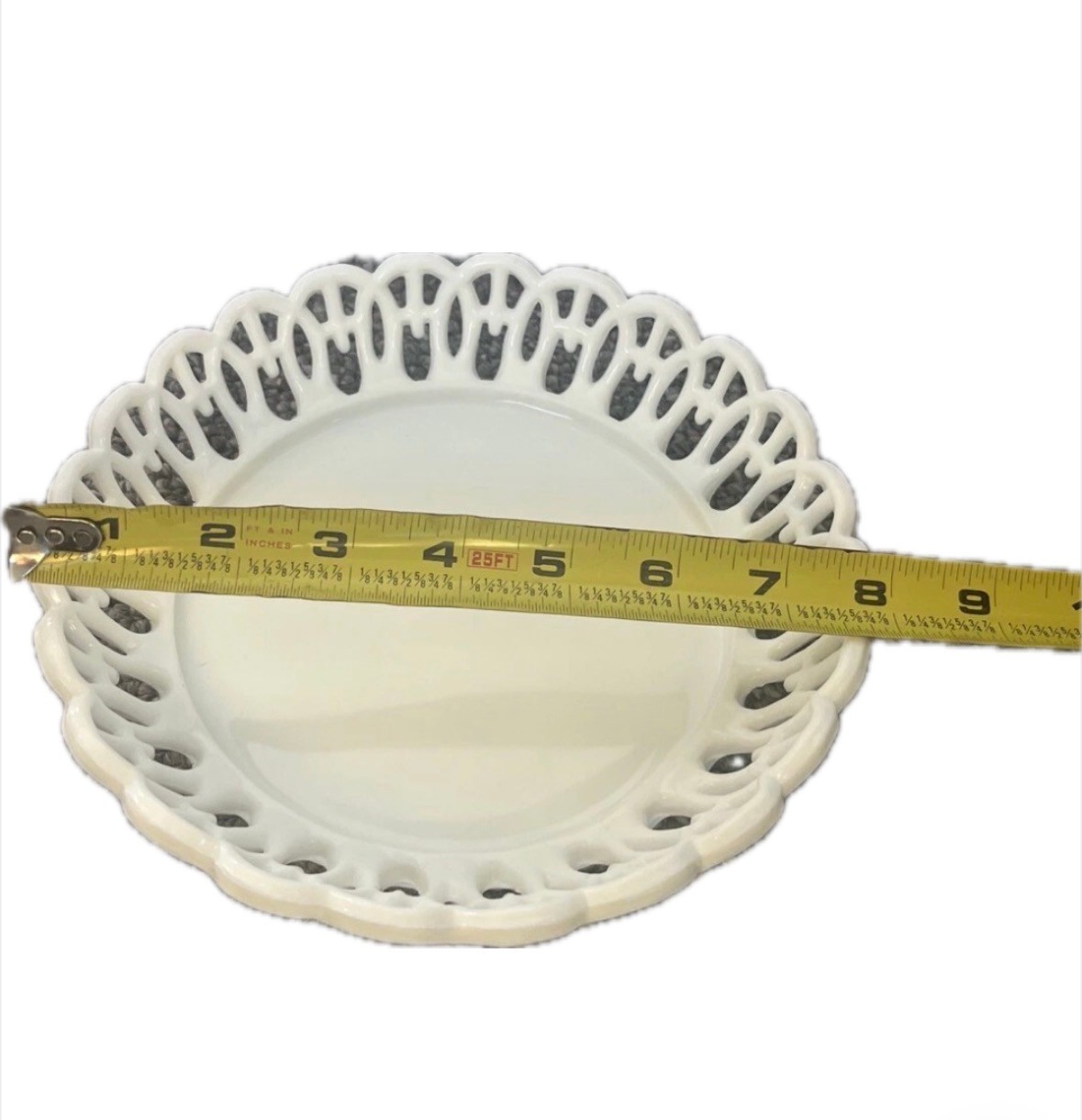 Vintage Milk Glass Border Bowl Set Of 3 features a classic white glass bowls with a delicate laced edge design. The vintage bowls are made of milk glass and are perfect for serving or decorative purposes.