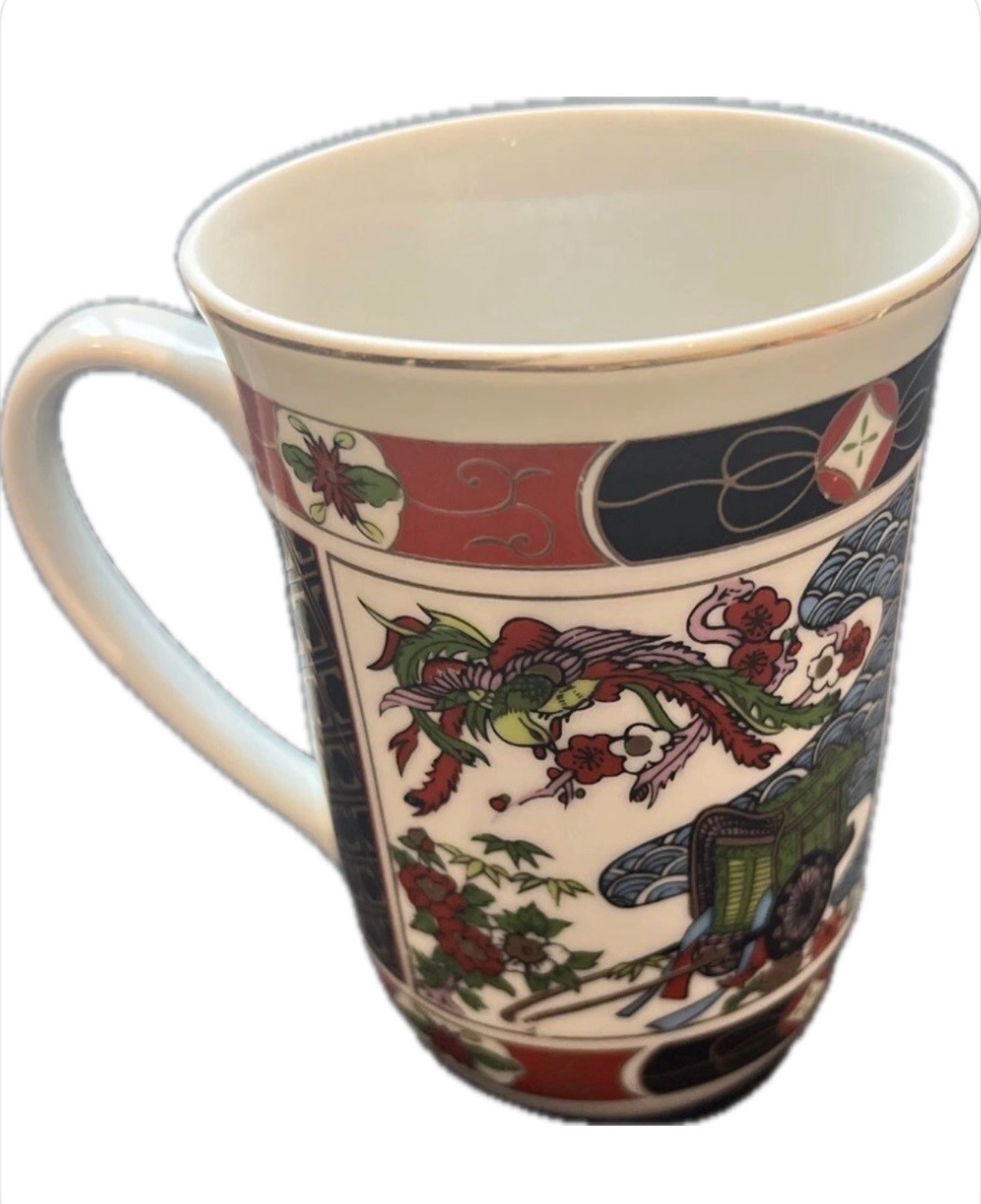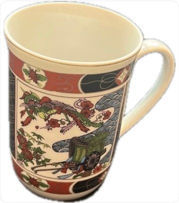 This beautiful coffee mug is a vintage piece from the Goshoguruma Design collection. It features a unique hand-painted Japanese Imari porcelain design that is sure to impress. The round shape and multicolor pattern make it a great addition to any collection or perfect for use on any occasion. With a height of 4 inches and width of 3 inches, this mug is perfect for hot or cold beverages. from Japan The mug is made from ceramic and has an Asian style themed art. This collectible item is perfect for anyone who loves art, anime, and manga.
