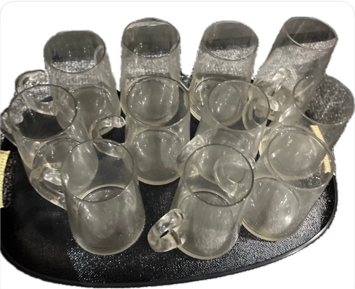 Elevate your drinking experience with this set of 12 contemporary glass mugs. Each mug has a 16oz capacity and comes with a sturdy handle for easy gripping. The solid clear glass material make these mugs perfect for all occasions and they are sure to add a touch of elegance to your kitchen or bar. Crafted with high-quality glassware set, these drinking glasses are perfect for adults and are sure to impress your guests. Whether you are hosting a party or just having a quiet night in, these mugs are the perfect addition to your collection. Get your hands on this stylish set of glasses today!