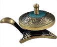 This vintage Judaica brass pedestal bowl is a beautiful addition to any collection. The intricate design and attention to detail make it a unique piece that is sure to impress. Whether you're a collector of Judaism memorabilia or simply appreciate handmade items, this bowl is a must-have. Crafted with care, this bowl is not only functional but also serves as a decorative piece. The brass material gives it a sleek and elegant look that will complement any space. Add this vintage Judaica brass pedestal bowl to your collection today.