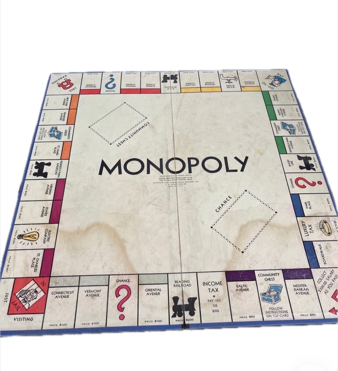 Experience the nostalgia of classic American board games with this vintage Monopoly game board from Parker Brothers, dated 1946. This blue edition game board is a great addition for collectors or enthusiasts looking to complete their vintage Monopoly set. The brand Parker Brothers is well-known for producing quality games that stand the test of time, and this particular edition is no exception. This board game is perfect for game nights with family and friends, or for those looking to add to their collection of vintage games. The game title, Monopoly, is a household name that brings excitement and joy to players of all ages. The year of manufacture, 1946, adds to the historical significance of this game board. Add this piece of history to your collection today.