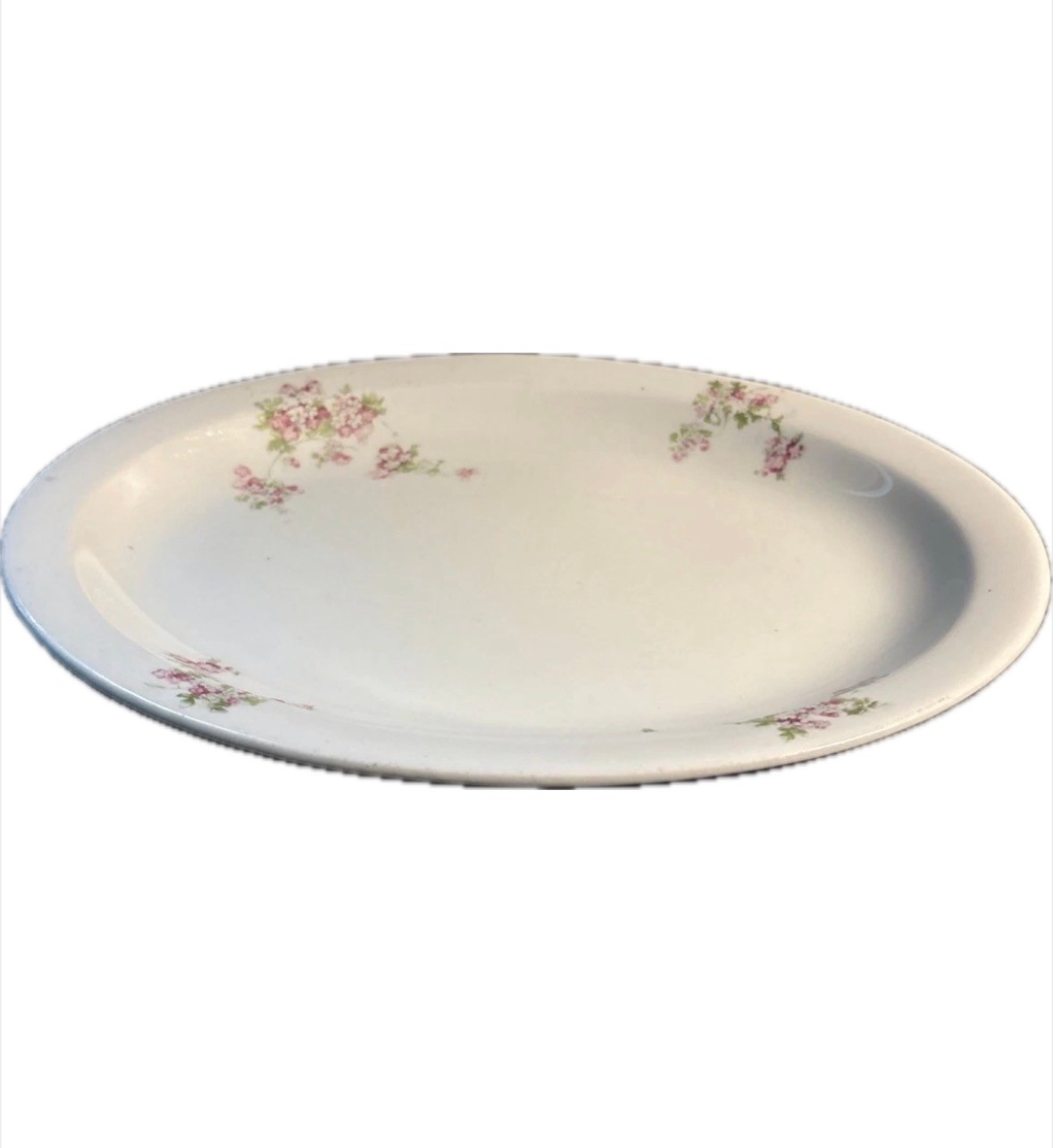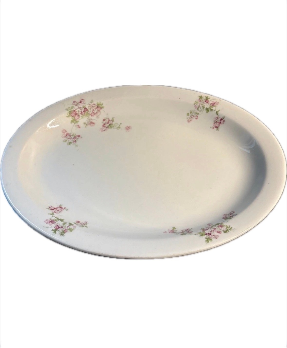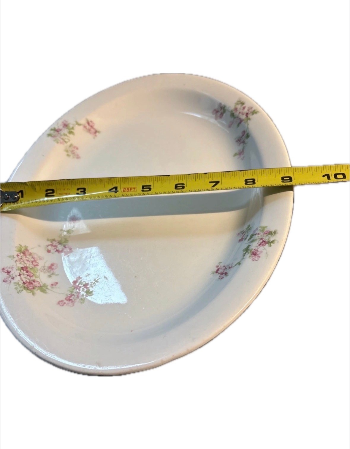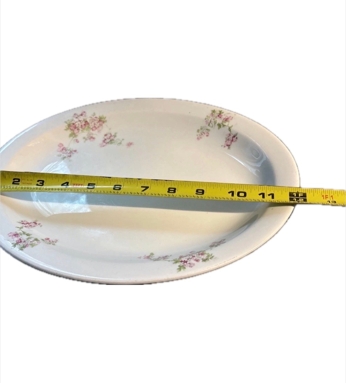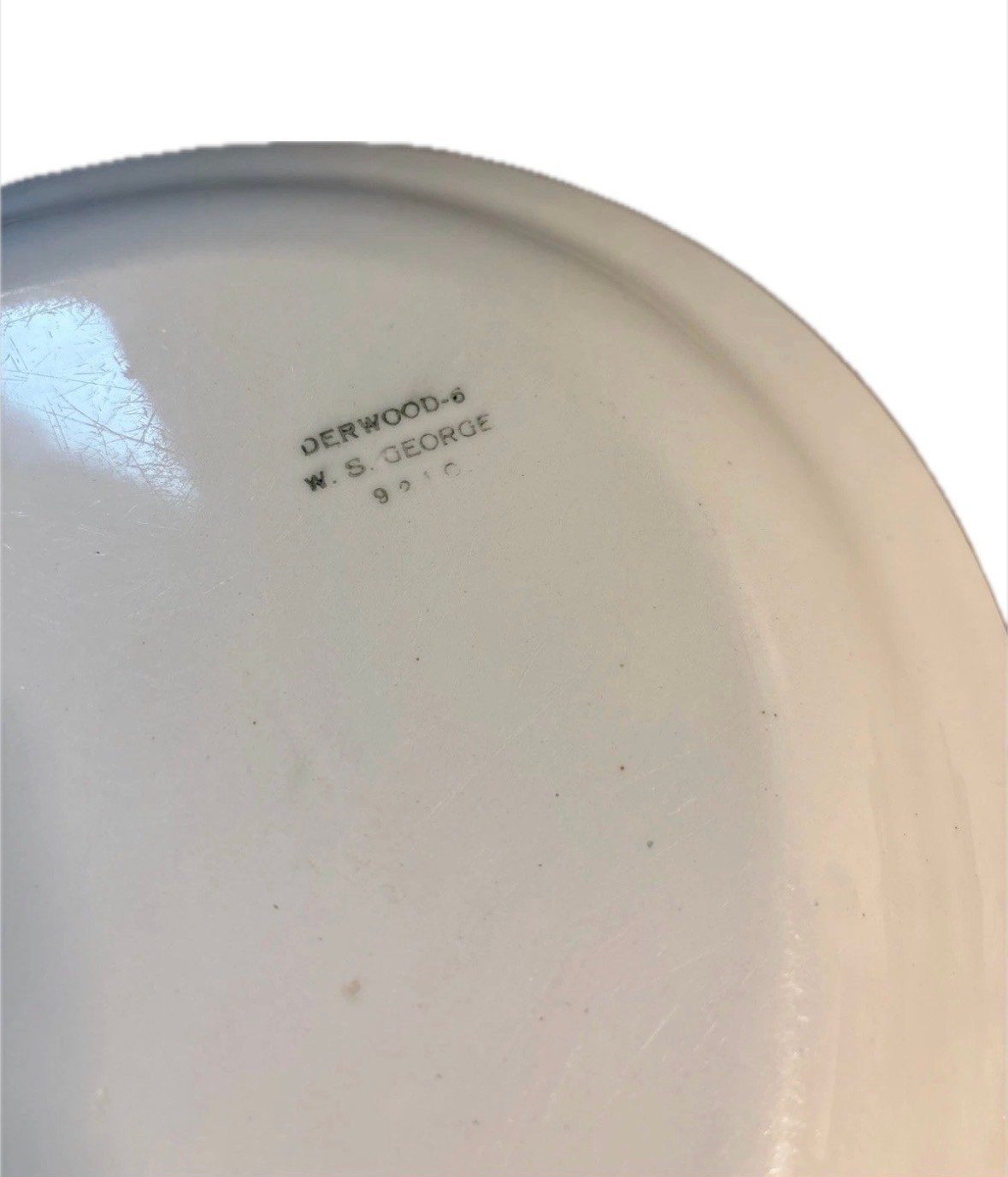 This beautiful platter from the George, W. S. Derwood product line is a must-have for any vintage collector. The oval shape and printed backstamp add to its charm, while the multicolor Pink Roses pattern and stoneware material make it a unique piece of history.The platter is an original and was manufactured in the United States during the time period of 1940-1949. It features a floral theme and is a great representation of The Great Depression style.