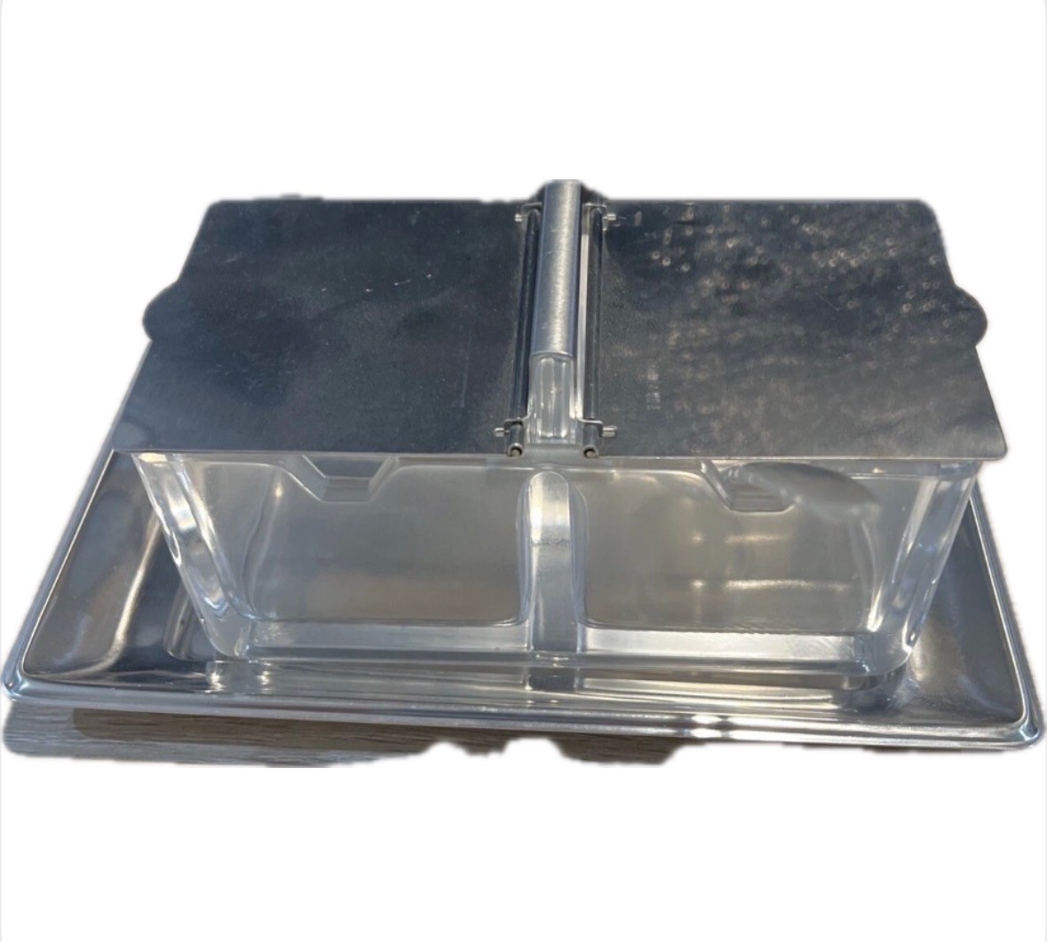 This WMF serving parts set is perfect for any kitchen. The set includes a condiment jam jelly container, and is made of high-quality cromargan material with a frosted finish. The silver color adds a touch of elegance to any table setting. This product is ideal for serving jams, chutneys, and other condiments during dinner parties or gatherings. It is a must-have item for any home cook who loves to entertain guests.